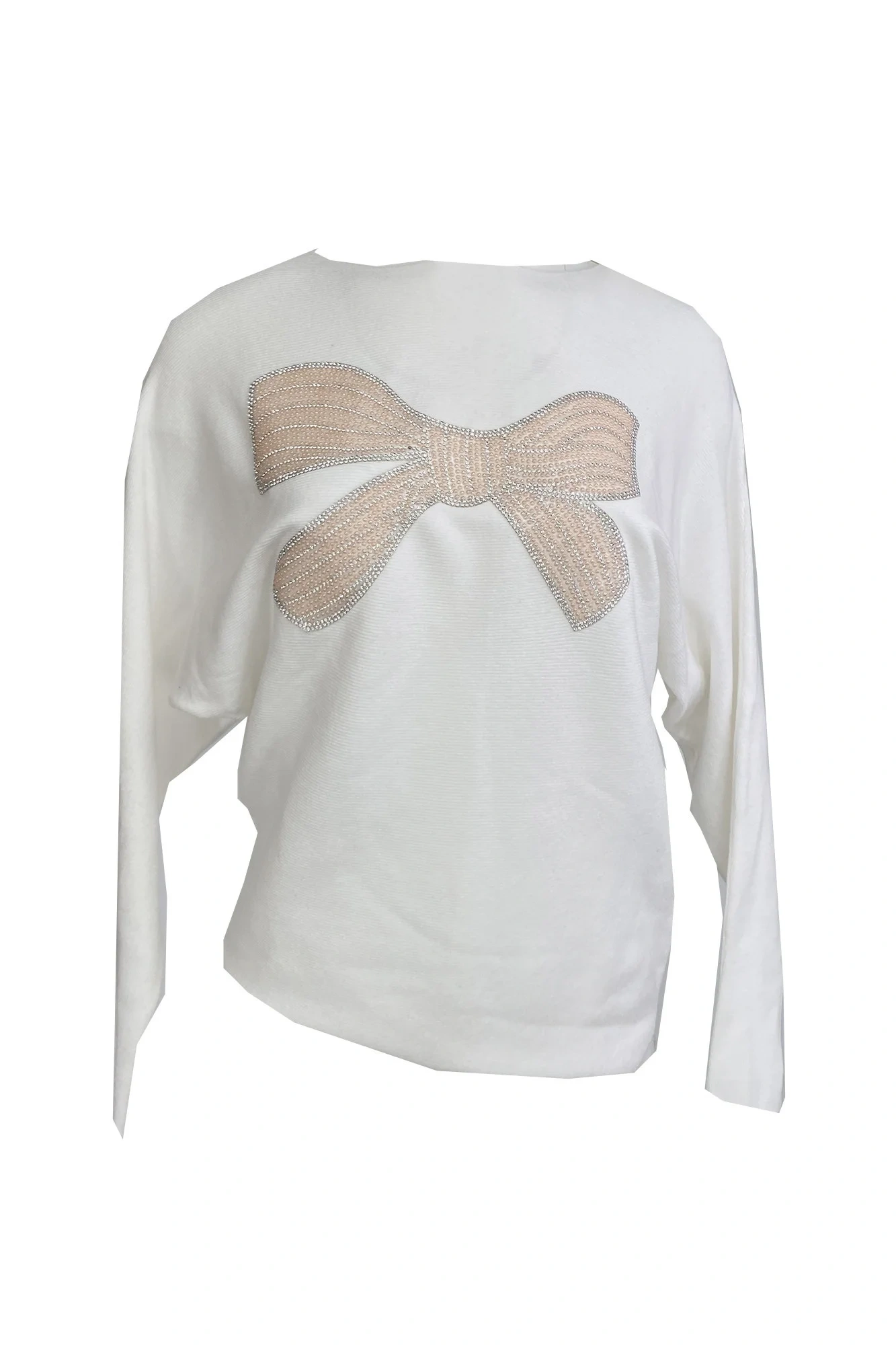 Dámský svetřík s aplikací mašle na předním díle - Gemini bílá S/M