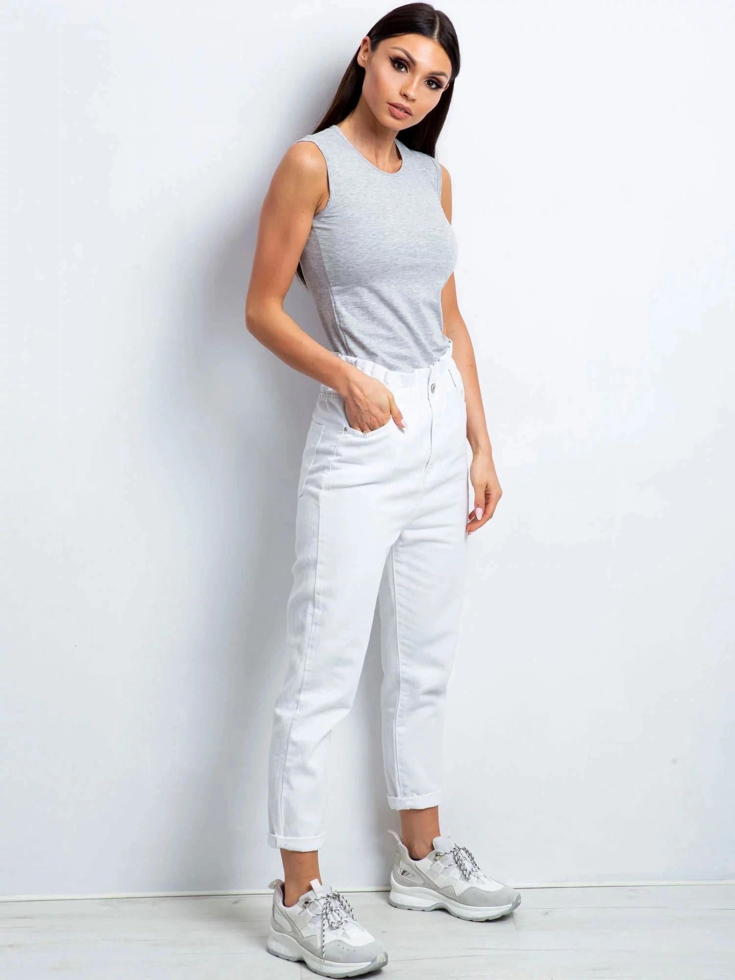 Bavlněný top v šedé barvě.