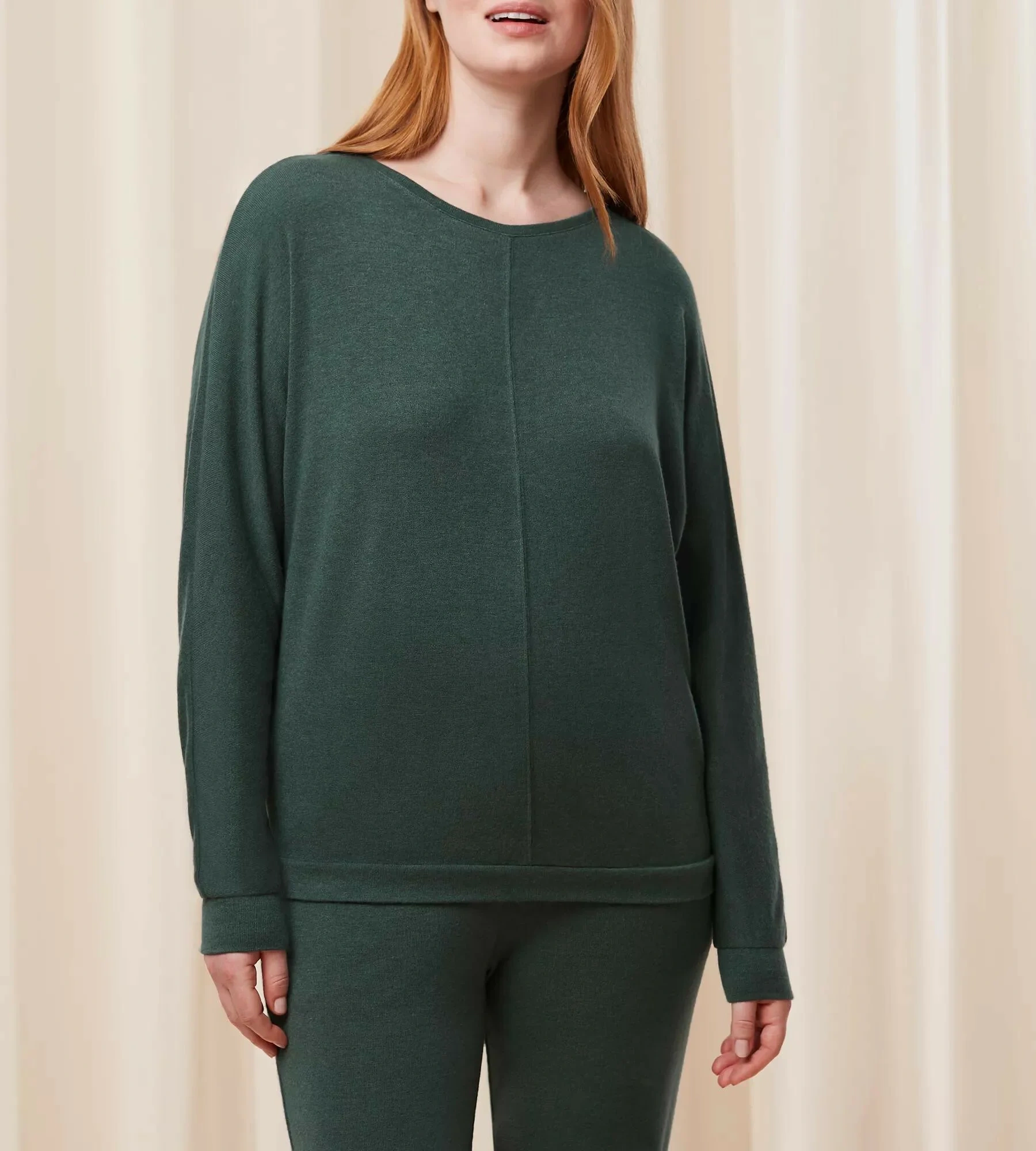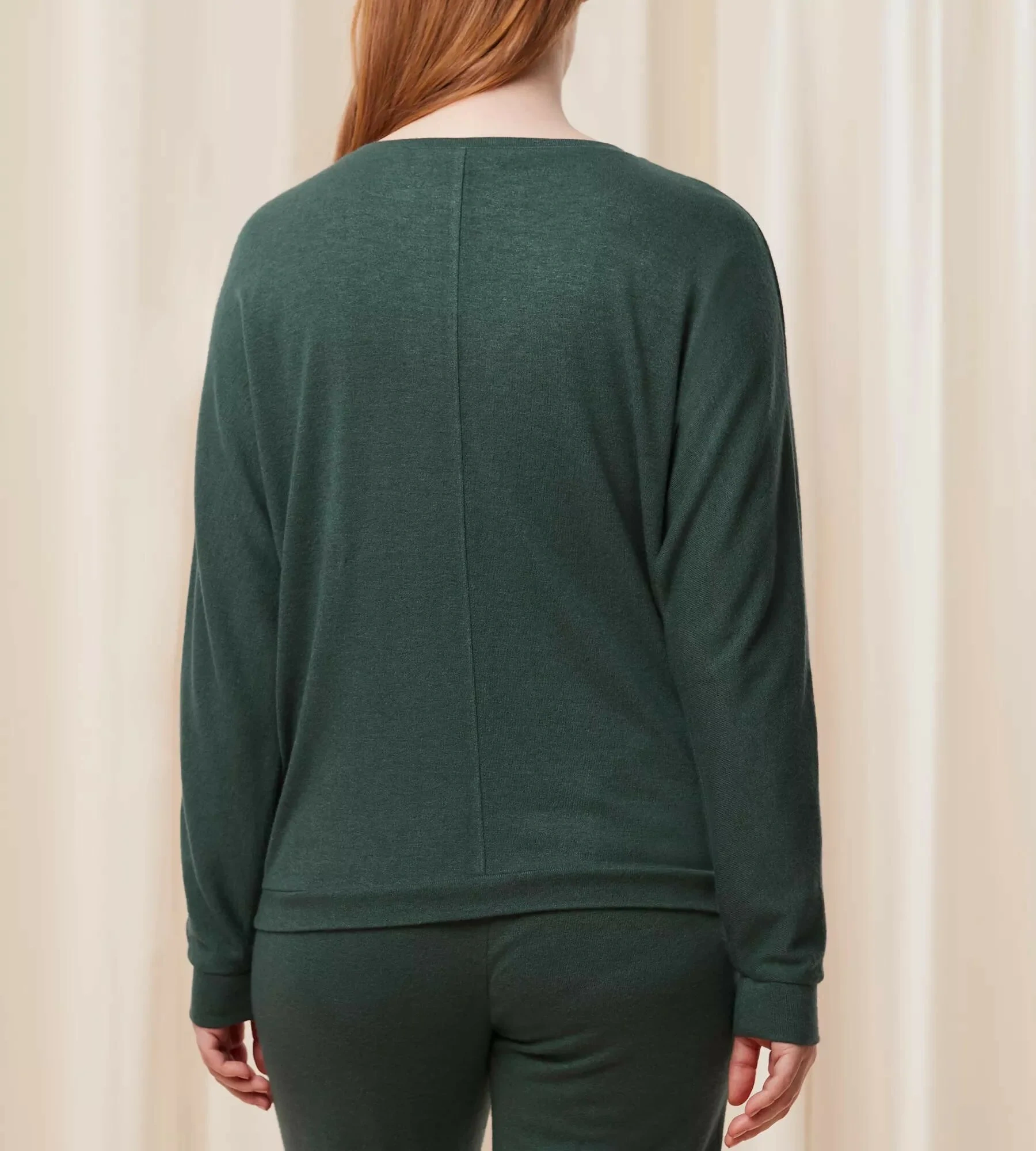 Oblečení na doma s trochou lásky navíc. Tento jemný a příjemný top jsme navrhli tak, abyste se v něm cítila volně a pohodlně. Lodičkový výstřih a rozšiřující se rukávy mu dodávají extra porci stylu.