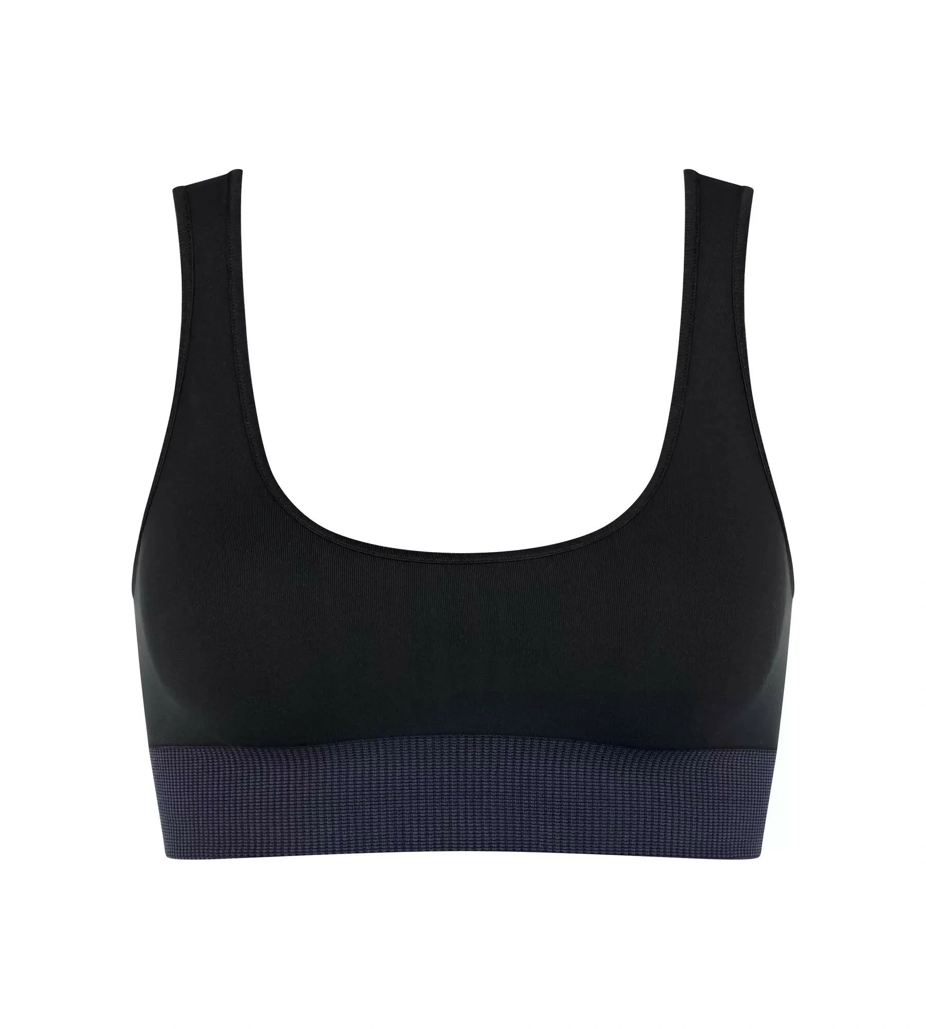 - Pružný žebrovaný pás pod prsy poskytuje mírnou podporu