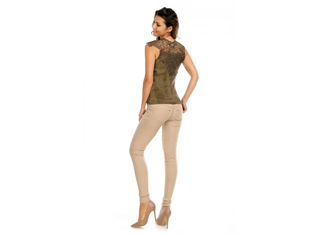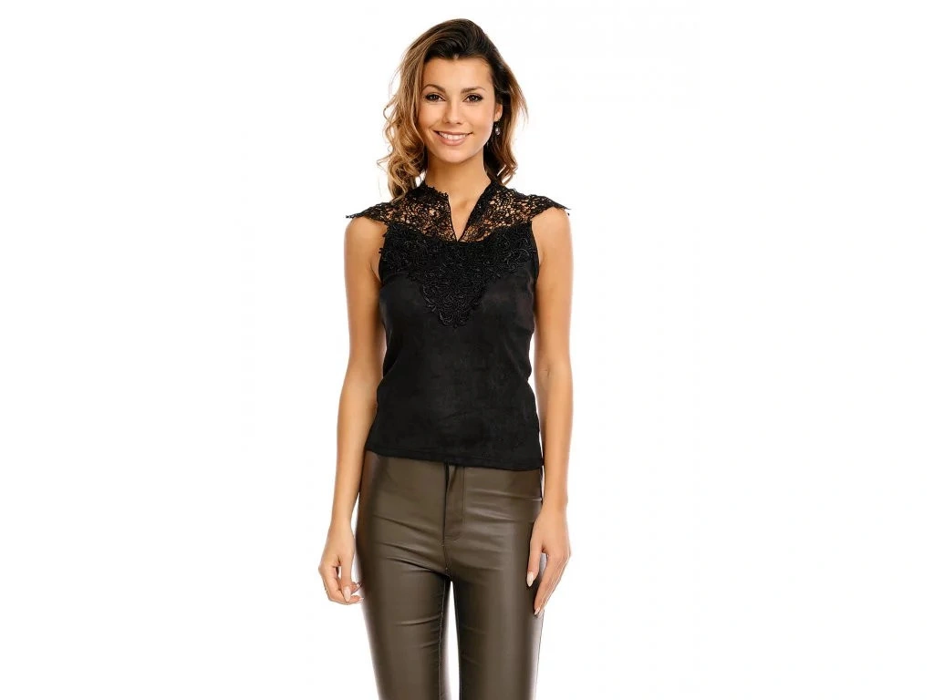Top - zdobený krajkou. Materiálové složení: 95% polyester, 5% elastan