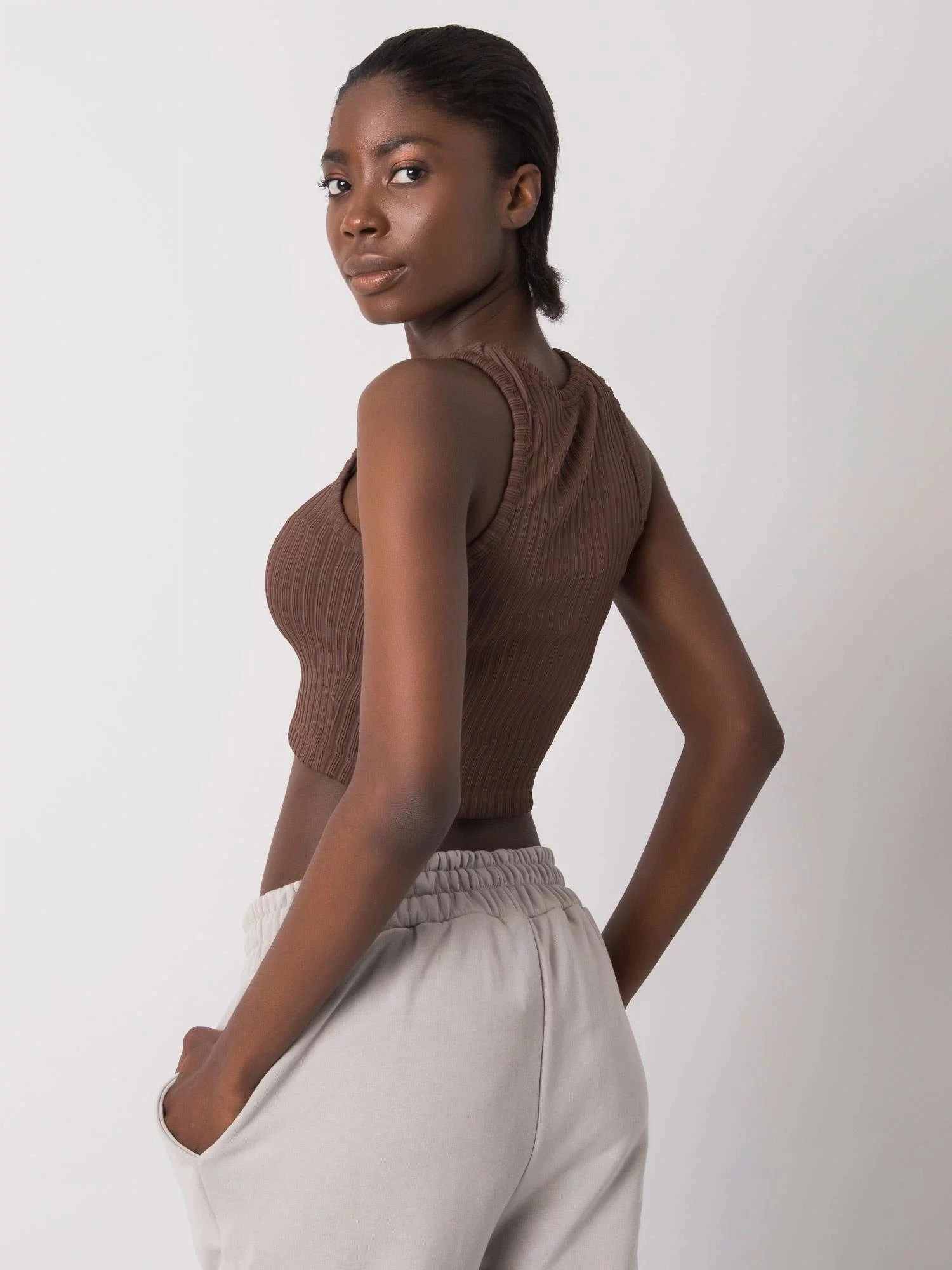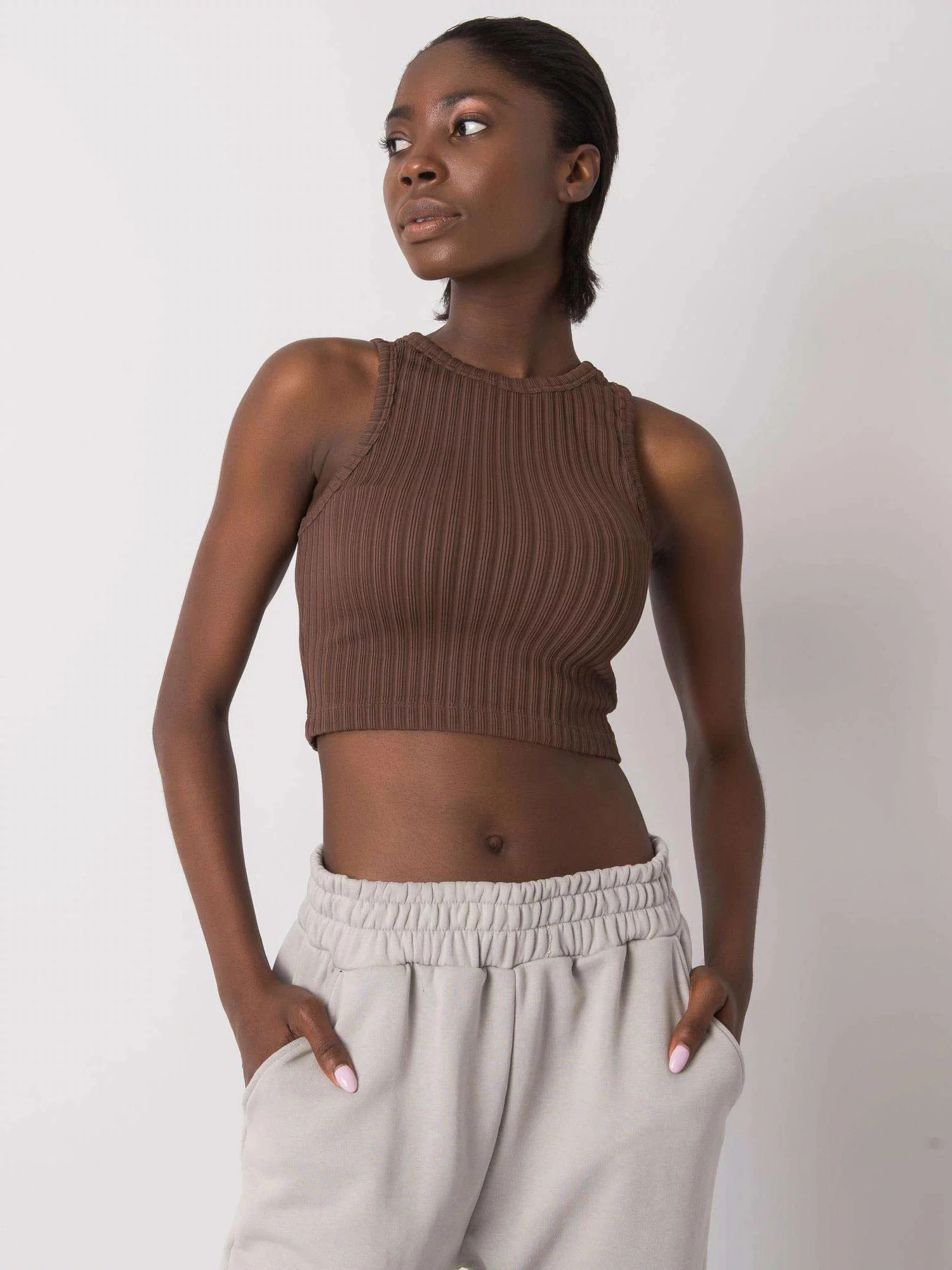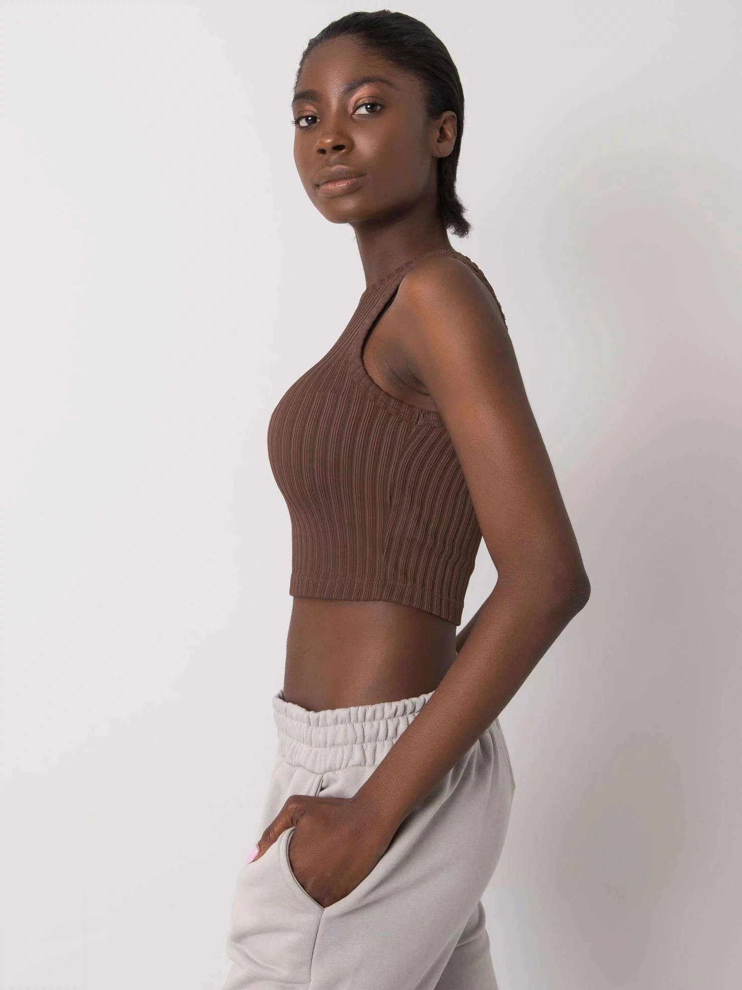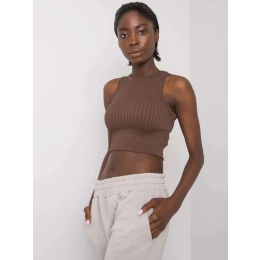 RUE PARIS Hnědý pruhovaný krátký top.