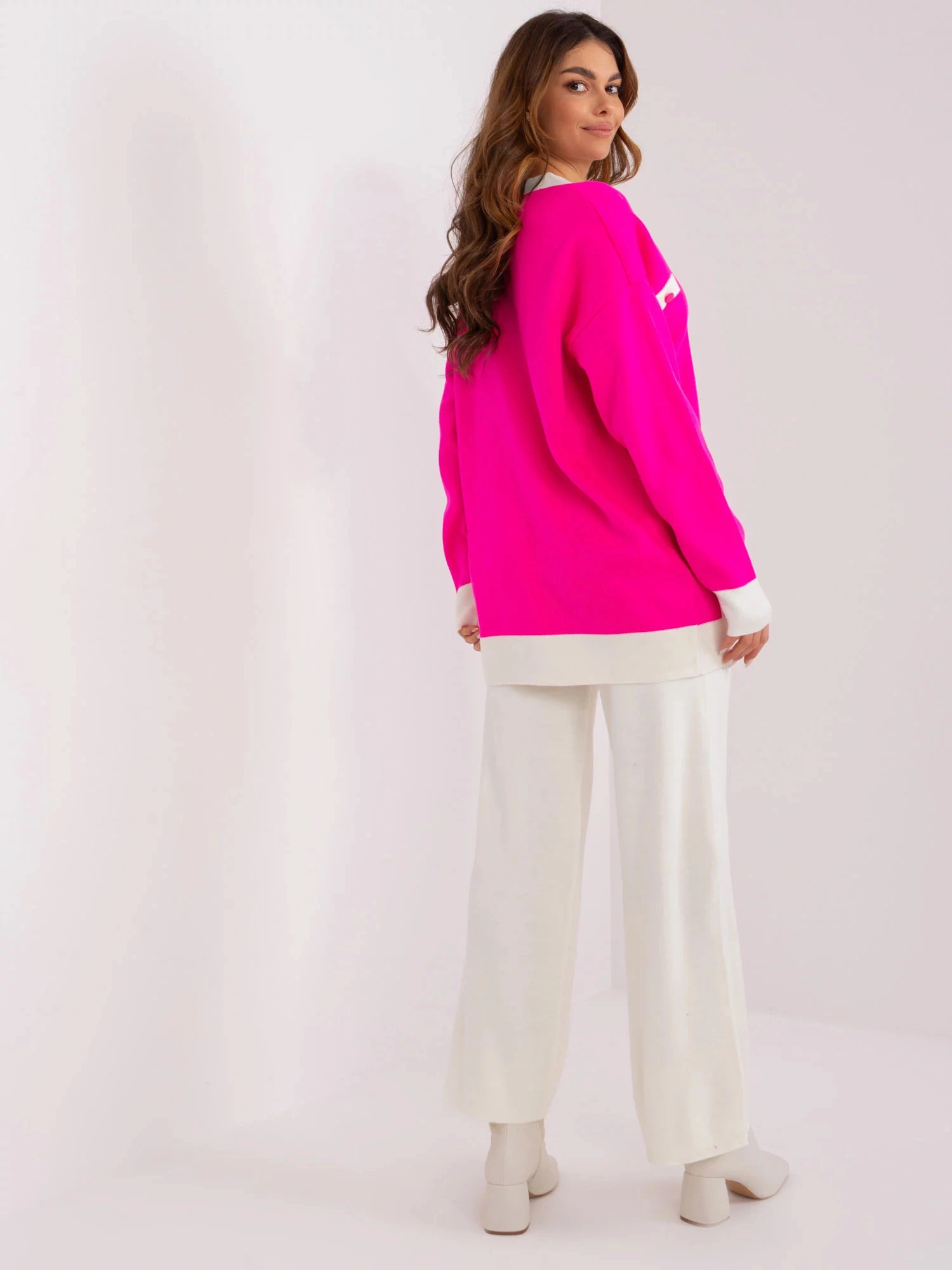 Rozměry soupravy v jedné velikosti měřené na plocho: šířka svetru v podpaží - 62 cm, délka rukávu - 60 cm, délka svetru - 74 cm, šířka kalhot v pase - 31 cm, výška v pase - 34 cm, délka kalhot - 101 cm.