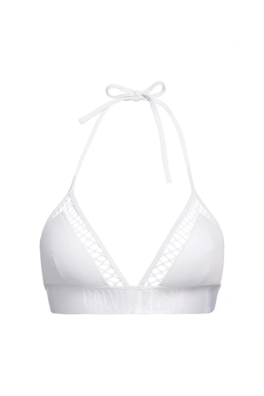 Dámské plavky Calvin Klein s klasickým zapínáním vzadu a zavazováním za krk. Jsou vyrobeny z rychleschnoucího elastického materiálu, který zajišťuje pohodlné nošení. Plavky obsahují gumu s logem značky Calvin Klein, což dodává produktu luxusní vzhled.