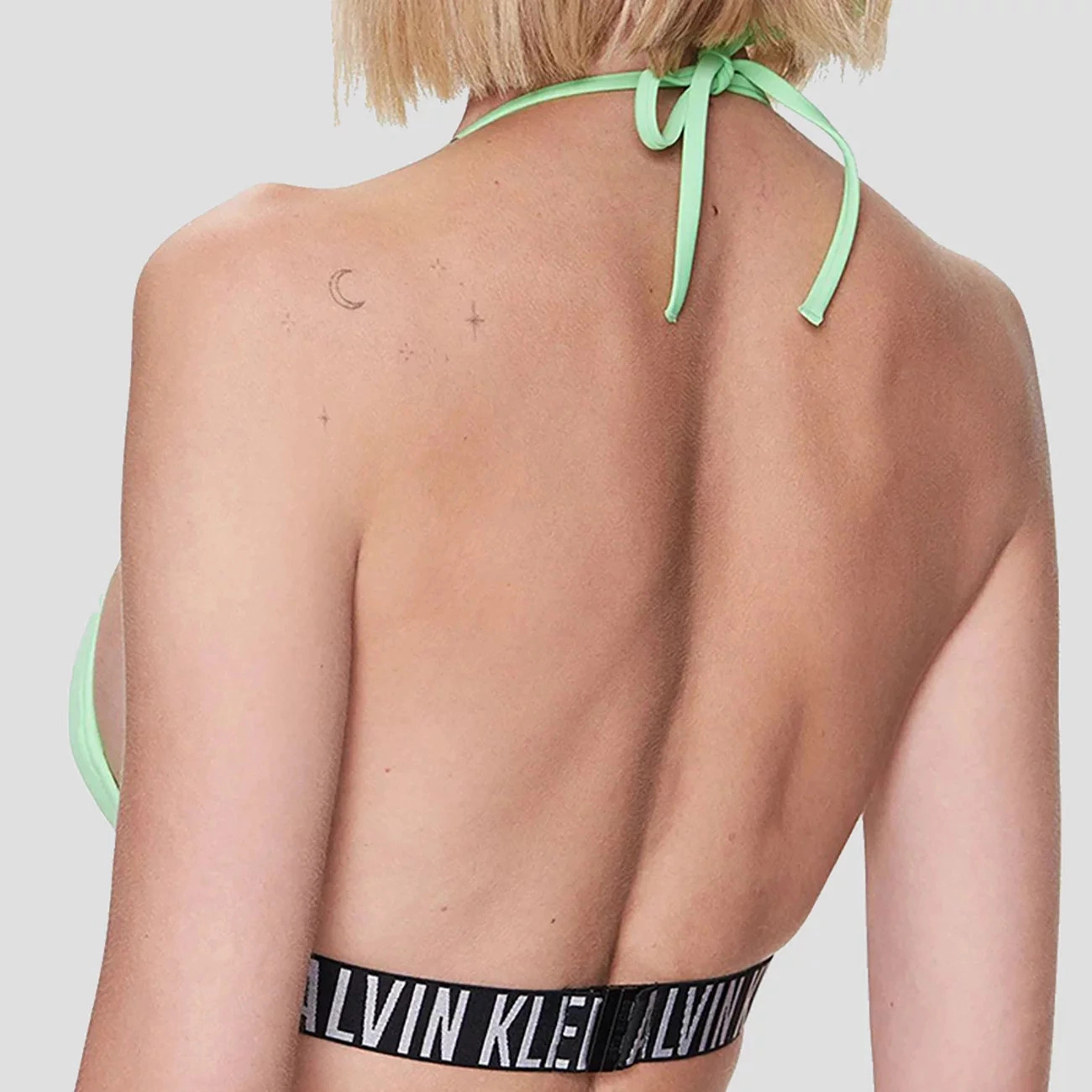 Vrchní díl plavek Calvin Klein je elegantní a stylový kousek, který se zavazuje za krkem a disponuje klasickým zapínáním. Díky gumě s logem značky získávají plavky jedinečný vzhled.