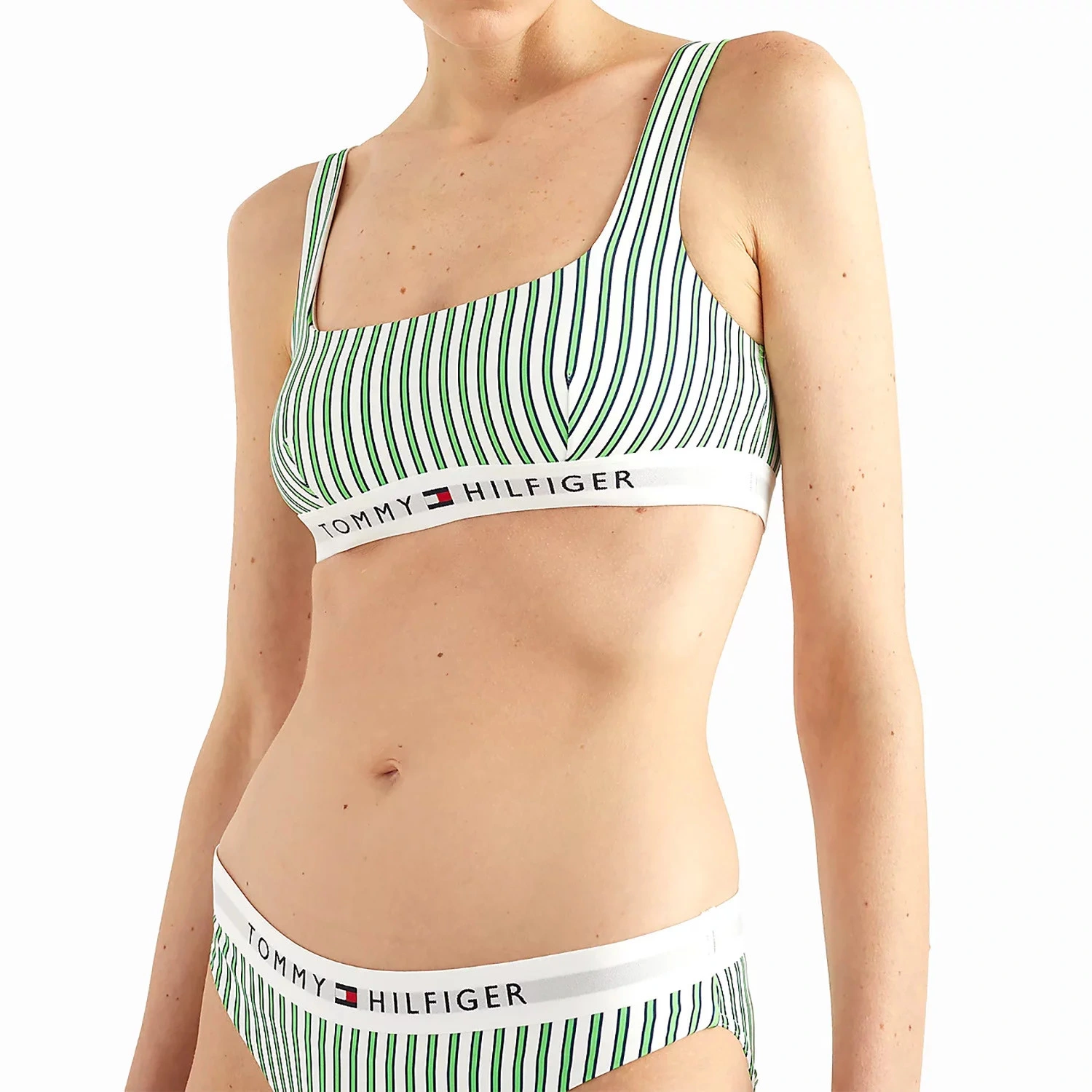 Tommy Hilfiger přináší horní díl plavek, který je vyroben z rychleschnoucího materiálu, což zajišťuje pohodlné nošení i po koupání. Tento kvalitní kousek je vyroben z 83% recyklovaného polyesteru a 17% elastanu, což zaručuje trvanlivost a pohodlí.