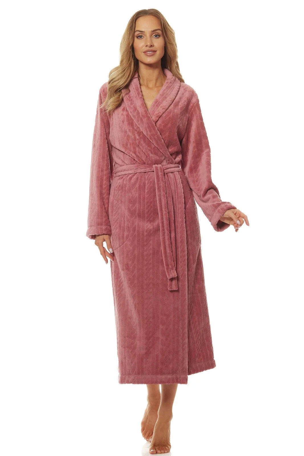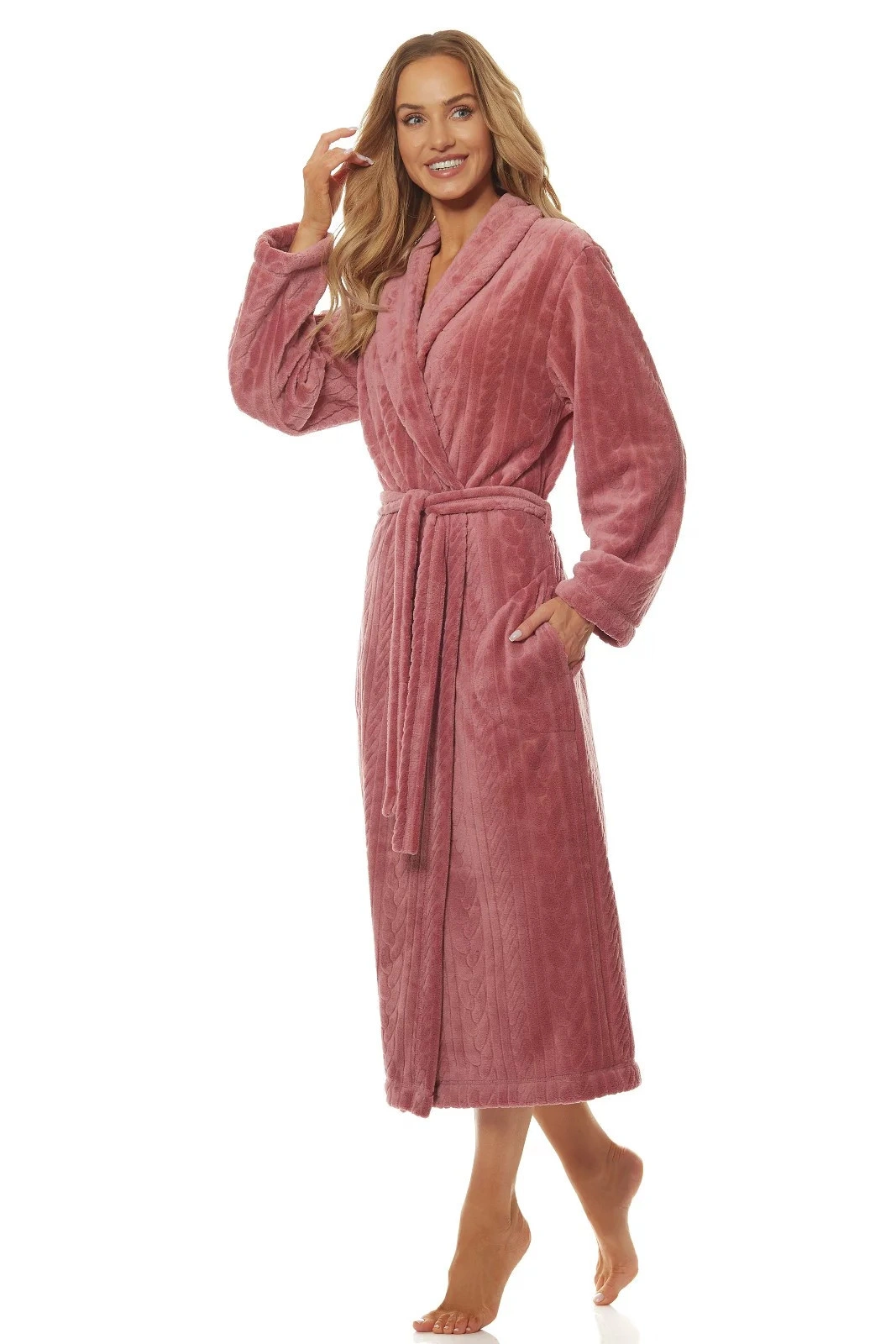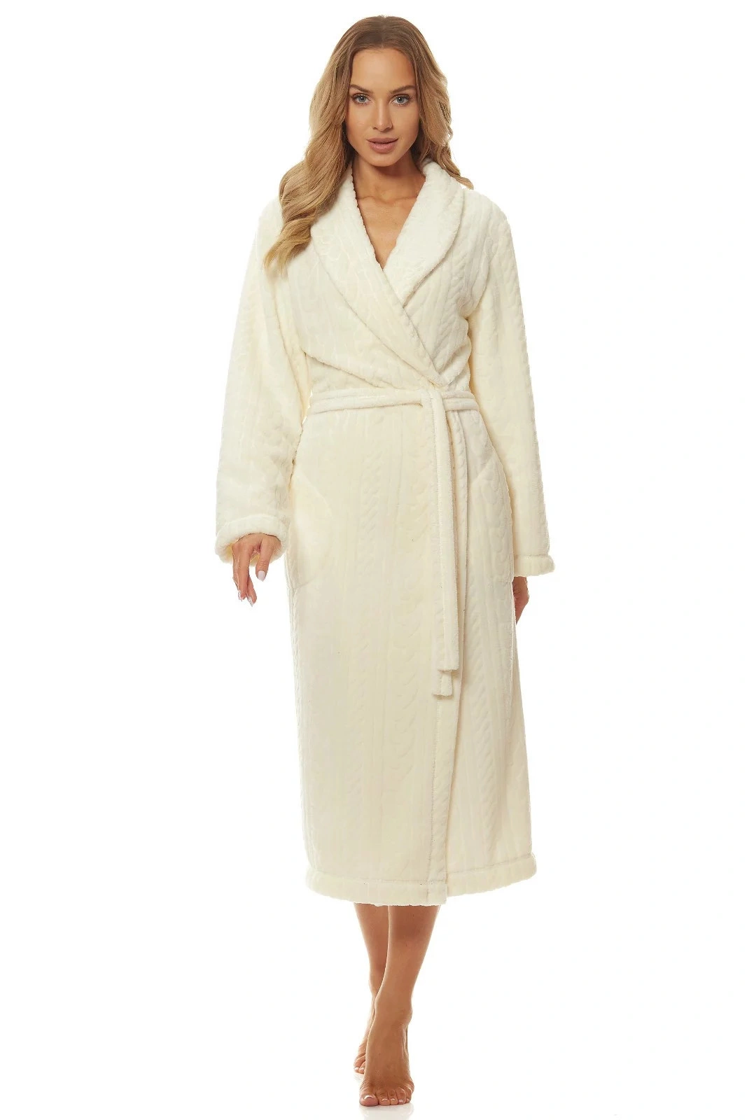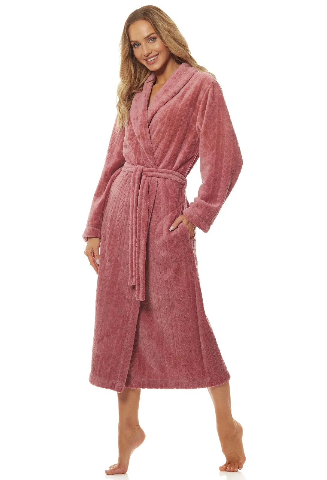Župan - se šálovým límcem, - vyrobený z měkké tkaniny, - s efektním copánkovým pleteným vzorem
