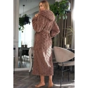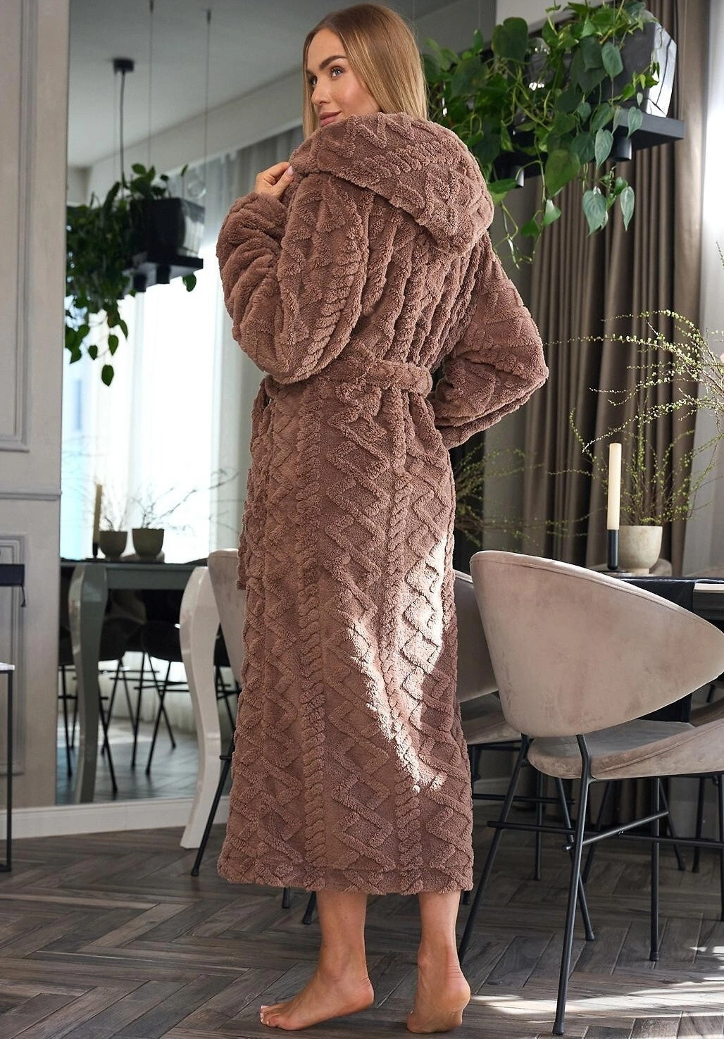 Dámský župan s vyráženým vzorem a kapucí značky L&L. Župan je dlouhý pod kolena a na bocích jsou zapuštěné kapsy. Župan lze okolo pasu uvázat páskem. Župan je velmi příjemný na dotek.