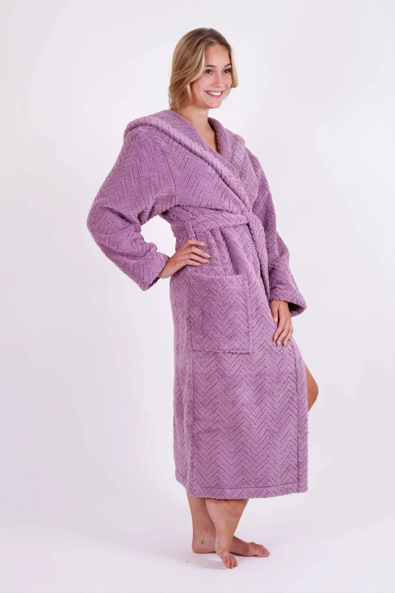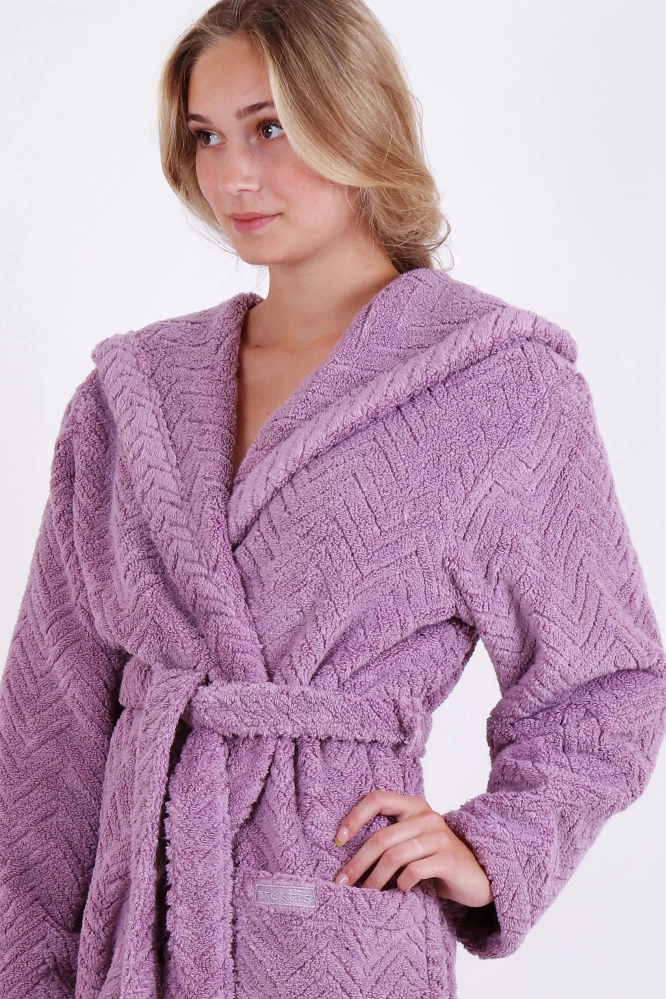 Jemná pastelová barva v odstínu světlé bezinky je právě ta pravá pro styl Hygge. Uvolněte se a relaxujte v koupacím plášti Athena v této klidné hřejivé barvě.