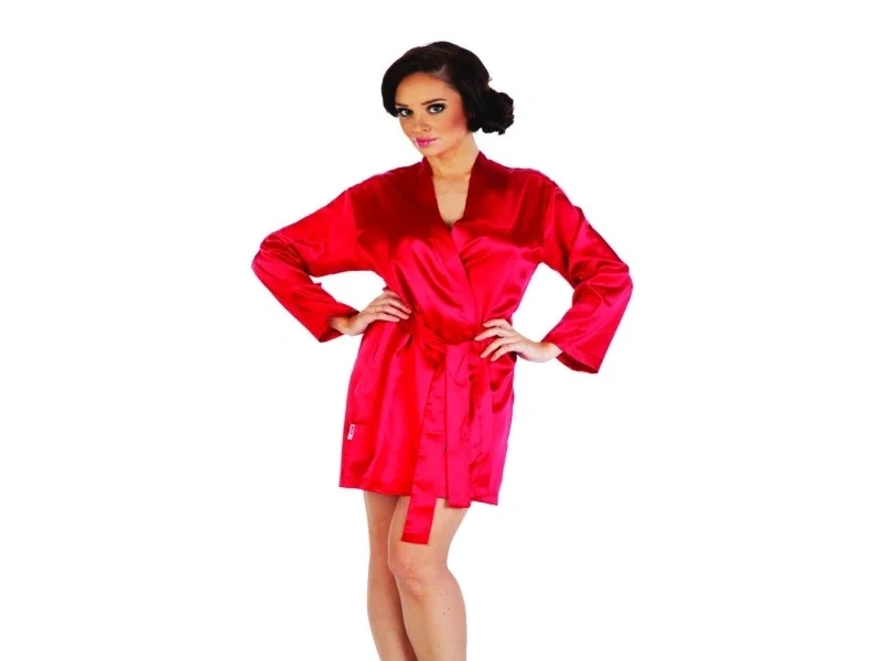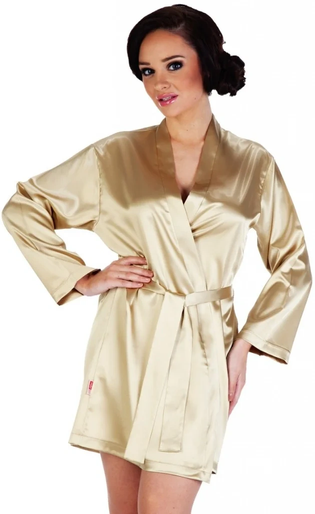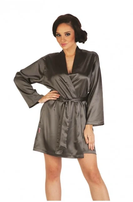 Jednoduchý saténový elegantní krátky župan. Je vyrobený z kvalitního a velmi příjemného materiálu.