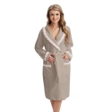 Saténový dámský župánek se 3/4 rukávy. Rukávy jsou ušité z krajky s květinovým motivem. Model se v p
