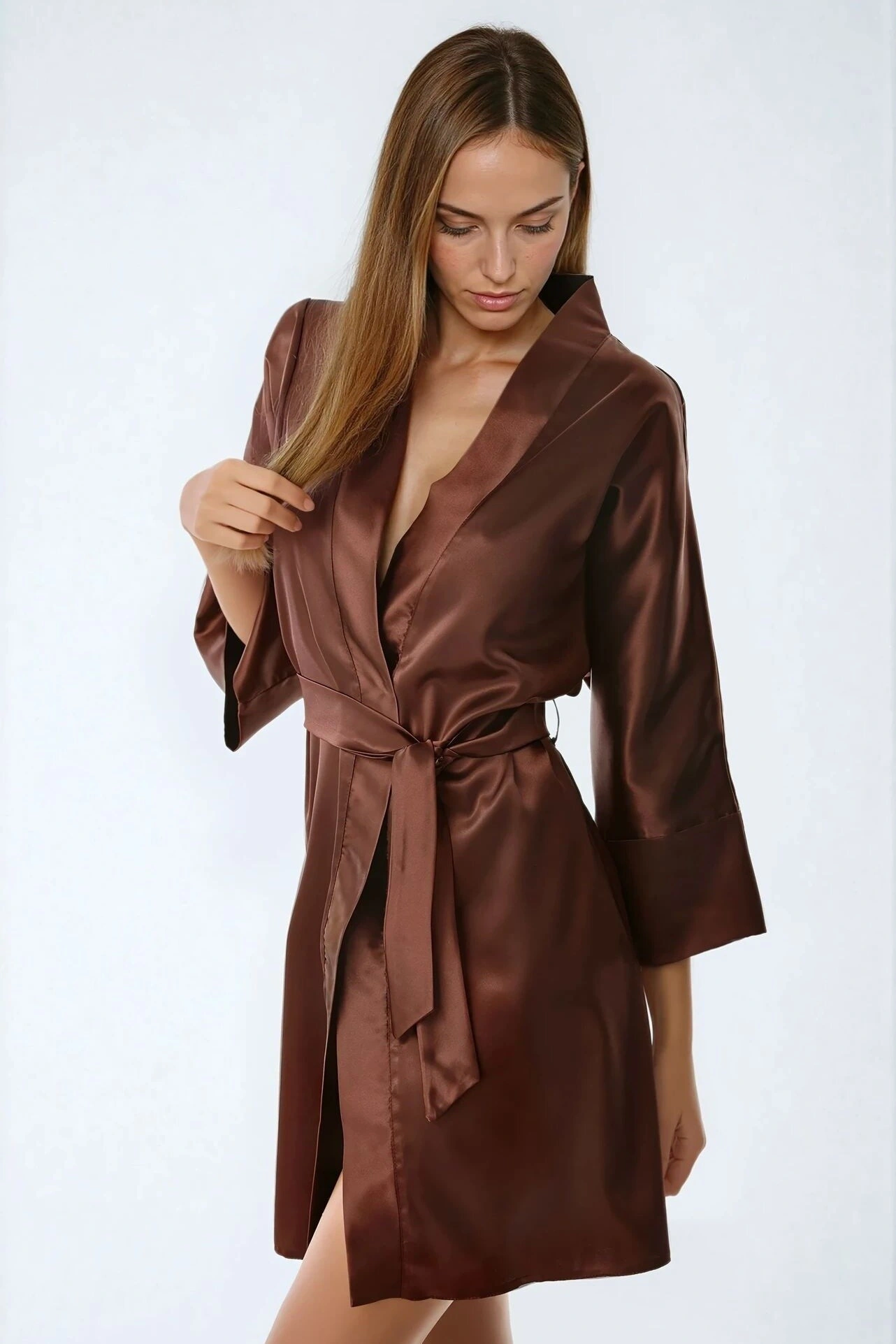 Krásný župan z jemného saténu je povinnou součástí šatníku každé ženy. Nenahraditelný v jakékoli sitVíce