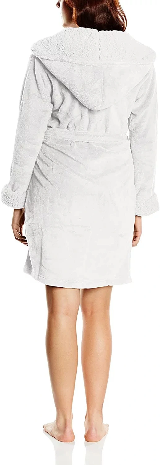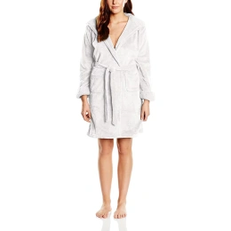 Krátký dámský župan, který je vyrobený z měkké nadýchané tkaniny. Župan má dlouhé rukávy, šálový lím