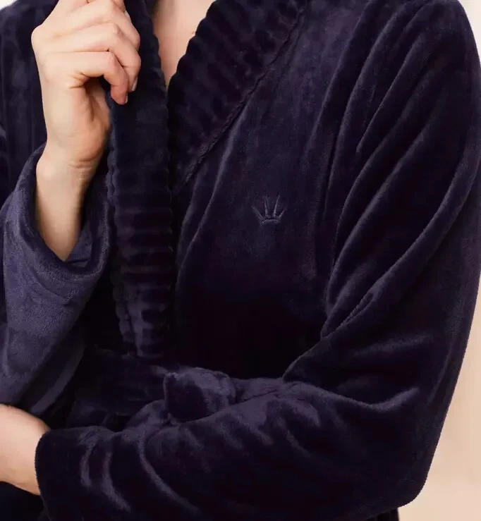 Luxusní. Žebrovaný. A tak pohodlný! Venku může být zima, ale když budete zahalená v tomto huňatém županu, bude vám to jedno.