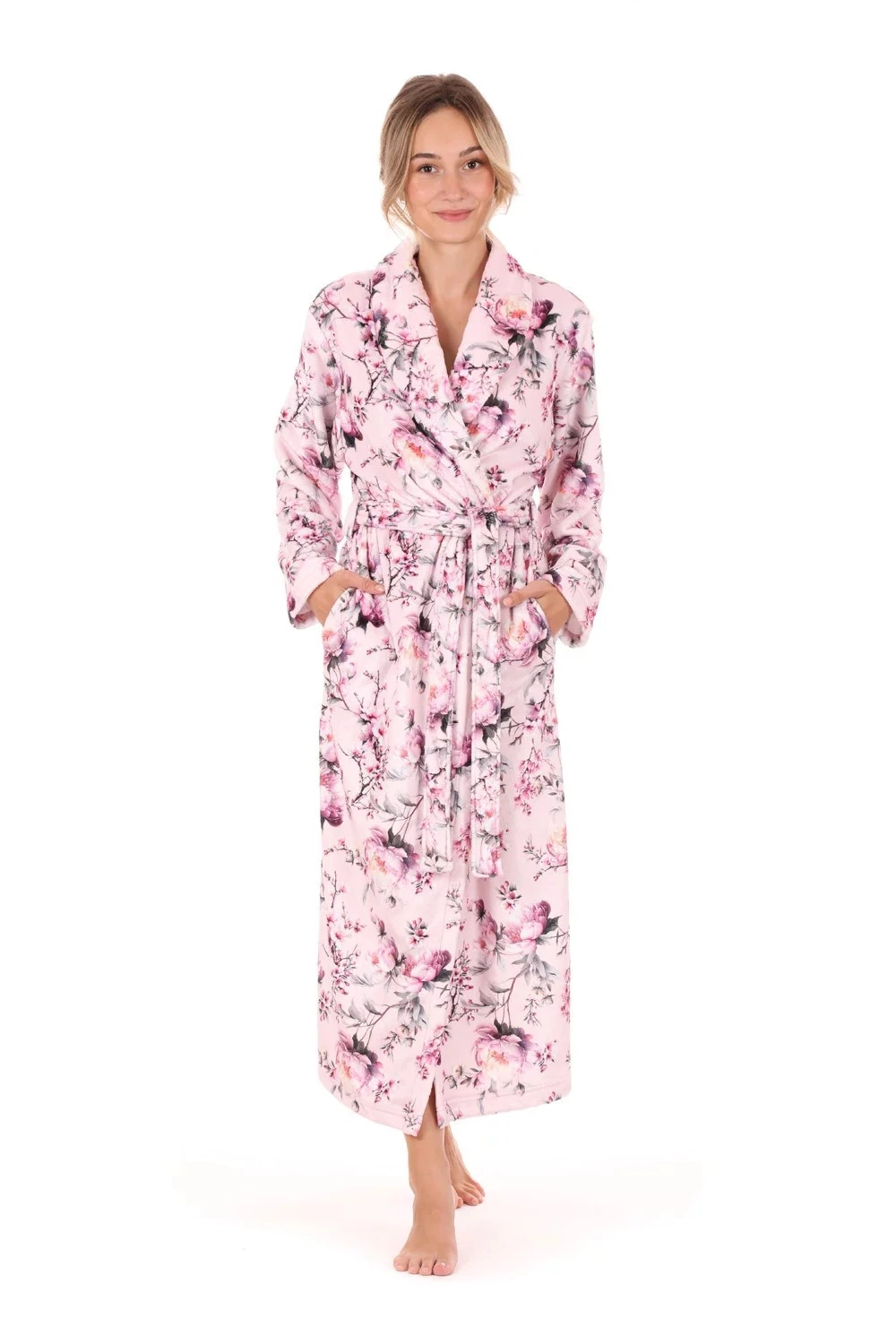 Každý detail jemného květinového vzoru dámského županu Toya pink vypráví příběh rozkvetlé jarní zahrady, kde vůně květin tančí v lehkém vánku.