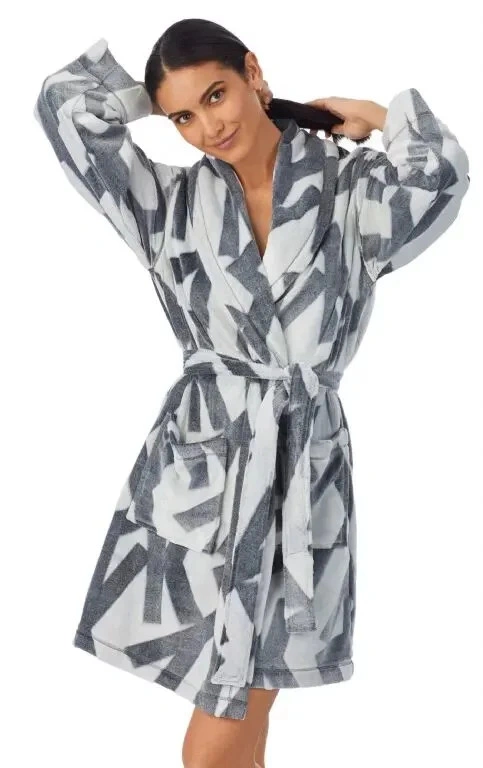 - příjemný krátký župan z žinylky s dlouhým rukávem a opakujícím se potiskem loga DKNY
