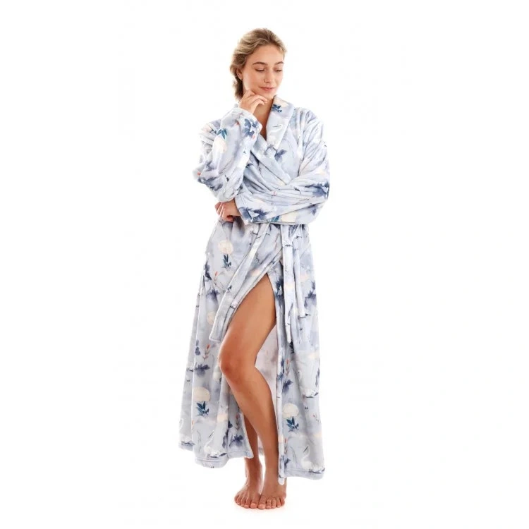 Yuna, dámský hřejivý župan s motivem jeřábů délka: 125cm S, 130cm M, 135cm L, 140cm XL, 145cm XXL střih: župan s límcem, kapsy v bočním švu , pásek velikosti: S,M,L,XL,XXL