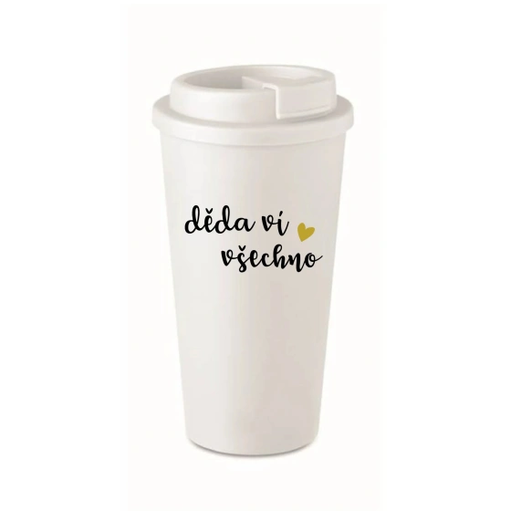 mohrnek "Humor na Cestách" - Pro Vaše Teplé Momenty Kdekoli Objevte náš stylový termohrnek s nápisem DĚDA VÍ VŠECHNO, který je ideální pro milovníky kávy a čaje s vtipným smyslem pro humor! Tento praktický a trendy termohrnek vám umožní vychutnávat váš oblíbený teplý nápoj kdekoli a kdykoli, a to s úsměvem na tváři díky jeho vtipnému nápisu. S objemem ideálním pro vaši ranní kávu nebo odpolední čaj, tento termohrnek udrží váš nápoj teplý po dlouhou dobu, zatímco vy se můžete věnovat svým každodenním aktivitám. Jeho robustní konstrukce zajišťuje, že váš nápoj zůstane bezpečný a teplý, ať už jste v práci, na výletě nebo jen na procházce. Termohrnek je navíc vyroben z odolných materiálů, které zaručují dlouhodobou použitelnost a snadnou údržbu. Jeho ergonomický design a zapečetěné víčko znamenají, že ho můžete vzít s sebou kamkoli bez obav z rozlití. Udělejte si radost tímto originálním termohrnkem nebo ho darujte jako perfektní dárek pro vaše přátele a rodinu, kteří oceňují dobrý humor spolu s kvalitním nápojem. Objednejte si ho nyní a začněte každý den s úsměvem! Doporučujeme ruční mytí tohoto produktu pro zachování jeho kvality a trvanlivosti. Nedoporučujeme umisťovat do myčky na nádobí.