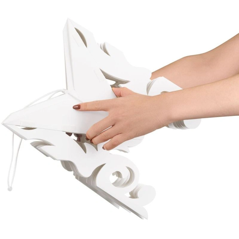 Dekorace je vyrobena z papíru, je lehká, takže ji lze snadno zavěsit na různá místa, například na strop nebo do okna, a jednoduchý způsob upevnění vám umožní vyzdobit prostor rychle a bez námahy.