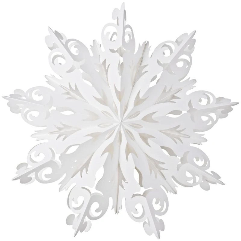 Papírová sněhová vločka DECORATION 64 CM WHITE je krásný a efektní dekorativní prvek, ideální pro zimní a vánoční výzdobu! Díky papírové konstrukci je lehká a snadno se zavěšuje. Díky své velikosti se tato sněhová vločka může stát ústředním bodem vaší výzdoby a vnést zimní atmosféru do každé místnosti.