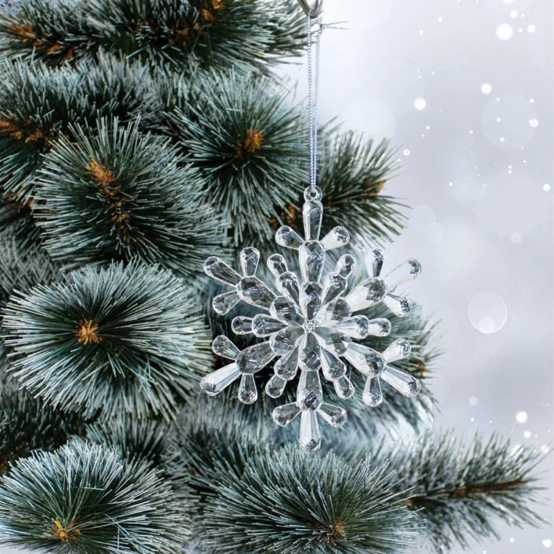 Závěsná dekorace Závěsná sněhová vločka 12x12 CM z akrylu je lehká a nápadná dekorace, která krásně odráží světlo a dodá sváteční, zimní atmosféru každé místnosti.