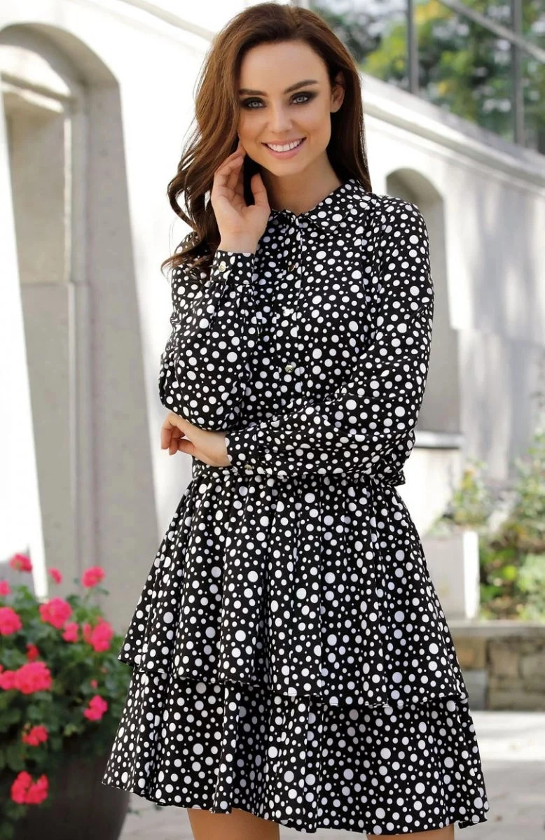 Denní šaty L281 - Lemoniade S černá-puntík