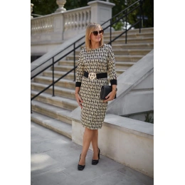 Velmi ženské a pohodlné šaty z žakárového úpletu s přídavkem elastanu. Navrženy v souladu se zásadami značky, tj. s ohledem na zralé ženy. Kimonový top se spadajícími rukávy, elastický pas s velkou ozdobnou sponou pro nastavení obvodu pasu, tlumené barvy a měkký a dobře ovladatelný úplet o hmotnosti cca 280 gm2. Díky tomu všemu jsou šaty ideální pro větší velikosti.