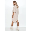 Ležérní mikinové šaty nadměrné velikosti, které se hodí na víkendové odpoledne i na prodloužený den v práci. Je to typ šatů, které můžete nosit na mnoho způsobů a pokaždé vypadat úplně jinak. Šaty jsou jednoduché, a proto je v nich použito mnoho zajímavých dekorativních prvků. Má geometrický střih a na zadní straně je mírně projmutý pro snadnější používání. Na jednom z rukávů je ozdobná aplikace. Srdíčkový výstřih zajišťuje, že silueta v šatech nepůsobí těžce.