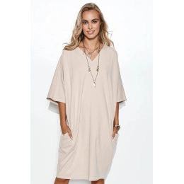 Ležérní mikinové šaty nadměrné velikosti, které se hodí na víkendové odpoledne i na prodloužený den v práci. Je to typ šatů, které můžete nosit na mnoho způsobů a pokaždé vypadat úplně jinak. Šaty jsou jednoduché, a proto je v nich použito mnoho zajímavých dekorativních prvků. Má geometrický střih a na zadní straně je mírně projmutý pro snadnější používání. Na jednom z rukávů je ozdobná aplikace. Srdíčkový výstřih zajišťuje, že silueta v šatech nepůsobí těžce.
