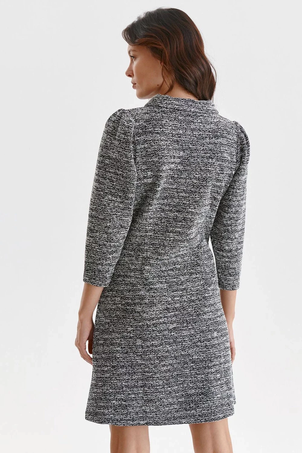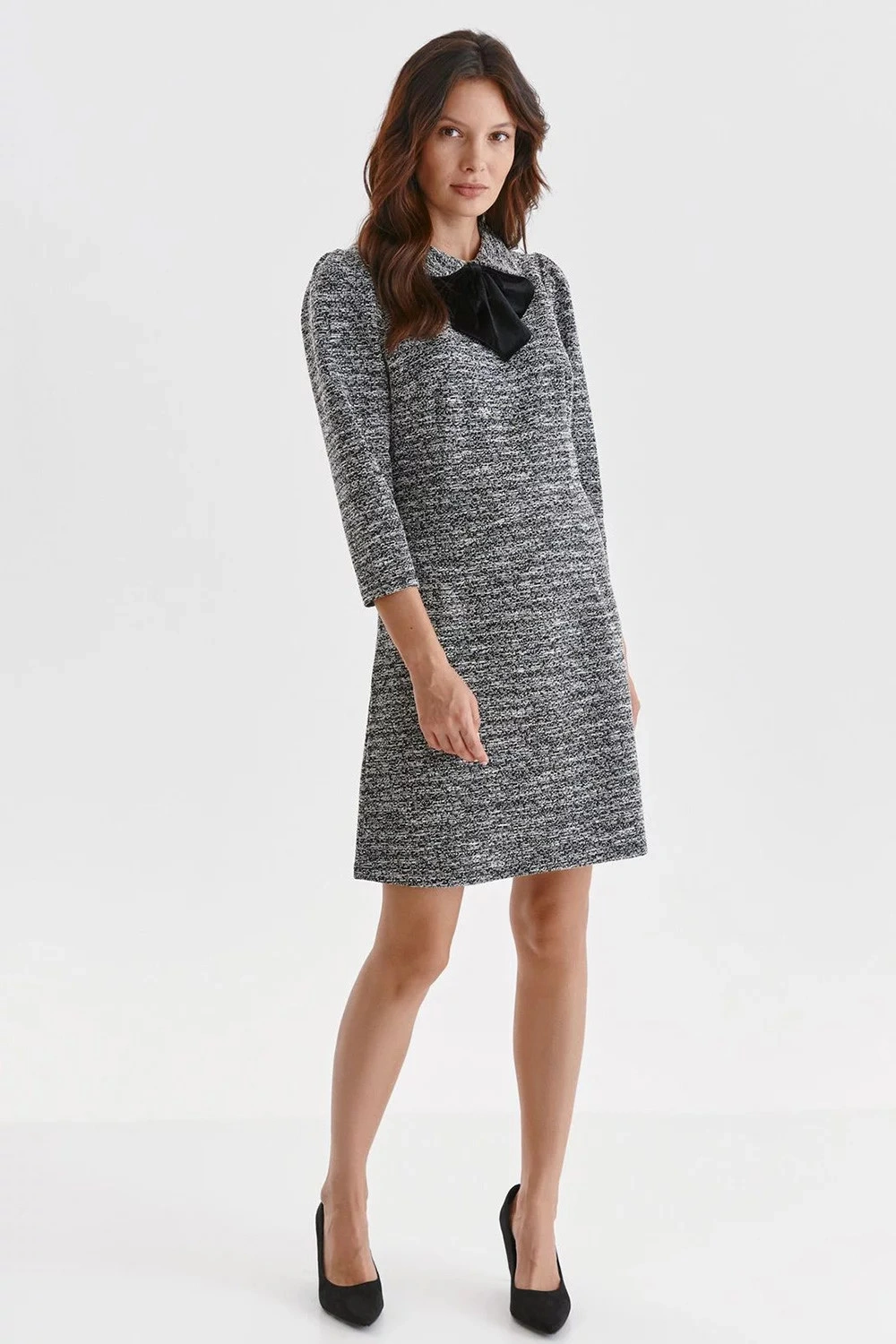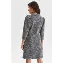Šaty jsou nesmírně okouzlující a plné vznešeného šarmu, mají volný střih, mírně leštěné rukávy ve 3/4 délce, BB límec s elegantním zavazováním vpředu a jsou vyrobeny z velmi příjemného na dotek a měkkého úpletu s příměsí metalizované příze. Šaty ve fitted střihu se skvěle hodí k různým pracovním i společenským outfitům.