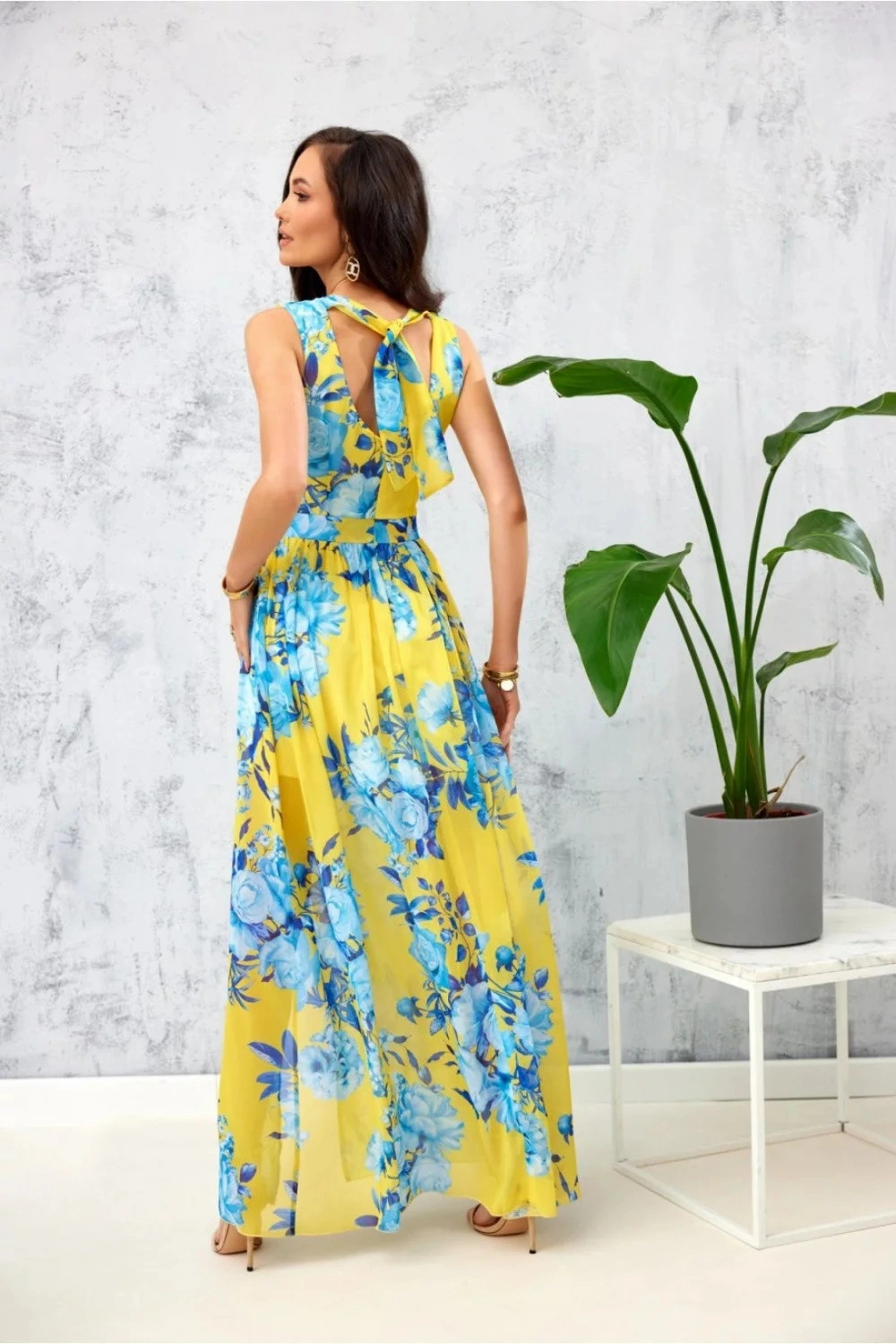 Květinové šifonové maxi šaty jsou vyrobeny z velmi kvalitního šifonu, který je éterický a vzdušný, takže se pohodlně nosí. Maxi šaty mají krásný obálkový výstřih, který opticky prodlouží naši siluetu. Večerní šaty mají navíc rozparek na nohou a ozdobné vázání na zádech. Vzadu se zapínají na krytý zip. Jsou podšité spodničkou, takže látka není průhledná. Elegantní šaty sluší zejména ženám, které oceňují lehkost, vzdušnost a milují krásné vzory. Dlouhé maxi šaty jsou ideální na formální vycházky. Na svatbě jistě potěší nejednu osobu. Výrobek je vyroben a ušit v Polsku.