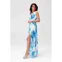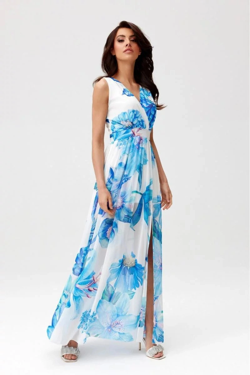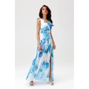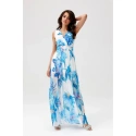 Šifonové maxi šaty se vyznačují promyšleným, velmi pohodlným střihem, který vám umožní cítit se na důležitých oslavách svobodně a pohodlně. Silná ramínka poskytují dobrou oporu, vrstvený výstřih zvýrazňuje poprsí a zúžený pas podtrhuje pas. Šaty jsou vyrobeny z lehké šifonové tkaniny a mají všitou podšívku, která zabraňuje průsvitnosti. Na zádech mají nápadný výřez, který vkusně odhaluje a obnažuje záda. Dlouhá, volně splývající sukně stydlivě odhaluje nohy díky rozparku na nohavici. Zapíná se vzadu na zip. Vzorované šaty Charlotte budou skvěle vypadat s doplňky v tlumených barvách. Vzhled krásně doplní béžová nebo bílá kabelka a sandály na podpatku. Doplňte je střídmými šperky a pro elegantní vzhled si k nim oblečte sako. Šaty se hodí na svatbu, křtiny, svaté přijímání i letní zahradní party.