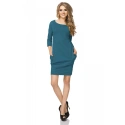 Sportovní šaty s lodičkovým výstřihem. Kapsa na bocích ve švu. Zadní řez. Spodní díl, rukávy a výstřih zůstaly nezpracované.