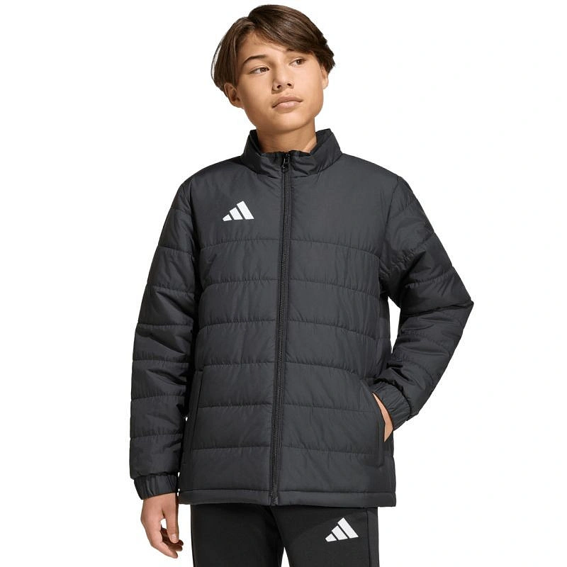 Dětská bunda adidas Entrada 26 Light black JZ9124 Dětská bunda adidas ti umožní předvést svůj fotbalový styl i za brankovou čárou. Prošívaná konstrukce s rovnoměrně rozloženou syntetickou výplní. Standardní střih. Zip po celé délce. Boční kapsy na zip. Elastické manžety. Materiál: 100% recyklovaný polyester.