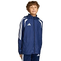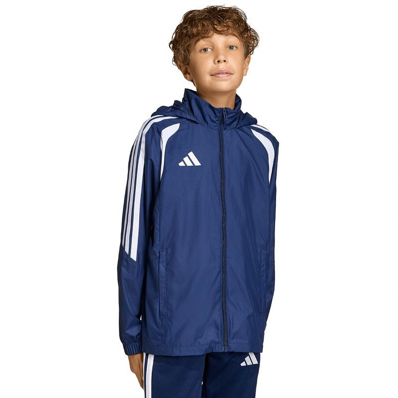 Dětská bunda adidas Tiro 26 League navy blue JY9725 Tato dětská bunda adidas pochází z řady Tiro. Podšívka ze síťoviny. Systém Clima365. Zip po celé délce. Nášivka na ochranu brady. Neodnímatelná kapuce bez možnosti regulace. Dvě boční kapsy na zip. Standardní střih. Manžety s elastickými manžetami. Technické údaje:- Materiál: 100% polyester (recyklovaný)- Standardní střih- Kapsy na zip- Podšívka ze síťoviny- Neodnímatelná kapuce- Elastické manžety.