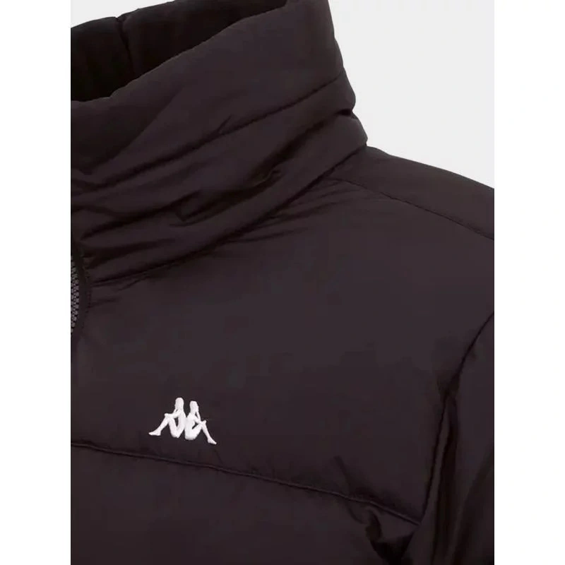 Dětská bunda od společnosti Kappa. Je to vynikající volba pro přechodné období i pro zimu. Syntetická péřová výplň udržuje teplo a neabsorbuje vlhkost zvenčí. Poskytuje tepelný komfort a pohodlí pro každodenní použití, ale skvěle se hodí i pro zimní aktivity. Bunda má dvě boční kapsy na zip. Vysoký límec chrání krk před chladnějšími poryvy větru.
