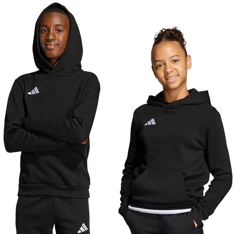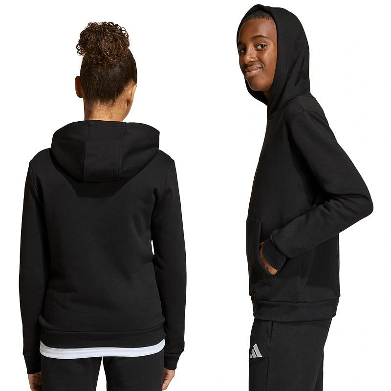 Dětská mikina adidas Entrada 26 Hoody černá JZ6569 Dětská fotbalová mikina adidas Entrada je nezbytnou výbavou každého mladého fotbalisty. Na omak měkká konstrukce z prodyšné bavlny a odolného polyesteru, která nedráždí pokožku. Zateplený vnitřní střih. Klasický střih umožňuje plný rozsah pohybu. Přední kapsa. Integrovaná nenastavitelná kapuce chránící hlavu před nepříznivým počasím. Žebrované manžety a spodní lem. Vyšívané logo výrobce. Materiál: 70 % bavlna, 30 % recyklovaný polyester.
