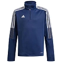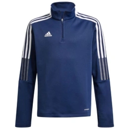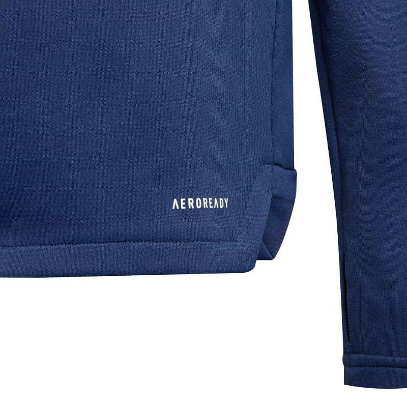 Dětská mikina adidas Tiro 21 Warm Top v tmavě modré barvě GK9672 Tato dětská fotbalová mikina adidas je ideální na trénink. Vysoký stojáček. Poloviční zip. Fleecová podšívka. Přizpůsobený střih s bočními rozparky. Technologie Aeroready pomáhá vysušovat pokožku a zvyšuje pohodlí. Pruhy na rukávech. Jemné logo. Primegreen příze. Materiál: 100% recyklovaný polyester.