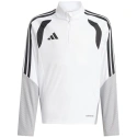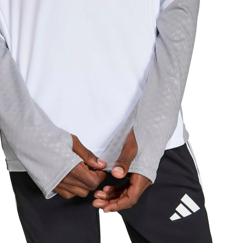 Dětská soutěžní tréninková mikina adidas Tiro 26 bílo-šedá KA7577 Tato dětská fotbalová mikina adidas je ideální na trénink. Stojáček. Krátký zip s ochrannou nášivkou na bradě. Přizpůsobený střih. Technologie Formotion pro ještě lepší pohyblivost. Síťované panely na hrudi. Pruhy na horní části rukávů. Otvory na palce, které udrží rukávy na svém místě. Reliéfní detaily na ramenou a bocích. Materiál: 100% recyklovaný polyester.