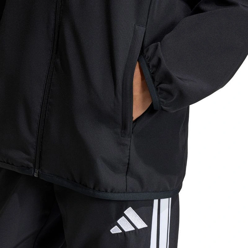 Dětská mikina adidas Tiro 26 League Presentation černá KA6416 Tato dětská mikina adidas je ideální pro chvíle, kdy si odpočinete mimo hřiště. model Tiro line. vyšívané logo. tři pruhy. lehká konstrukce. recyklovaná polyesterová vlákna. standardní střih. zip po celé délce. boční kapsy na zip. elastické manžety. materiál: 100% recyklovaný polyester.
