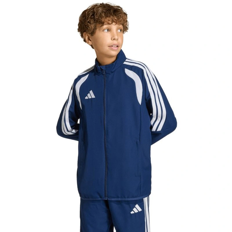 Dětská mikina adidas Tiro 26 League Presentation v tmavě modré barvě KA6414 Tato dětská mikina adidas je ideální pro chvíle, kdy si odpočinete mimo lajny. Model Tiro line. Vyšívané logo. 3 pruhy. lehká konstrukce. recyklovaná polyesterová vlákna. standardní střih. zip po celé délce. boční kapsy na zip. elastické manžety. materiál: 100% recyklovaný polyester.