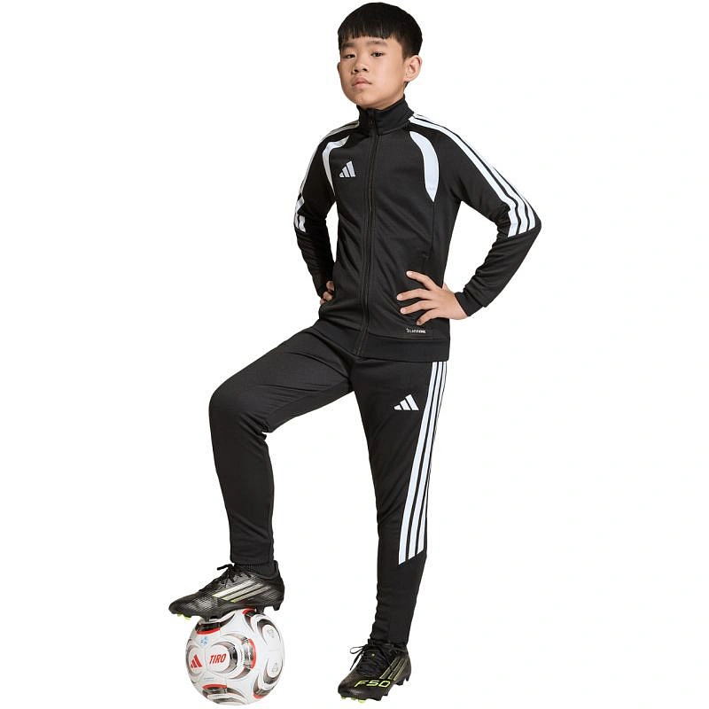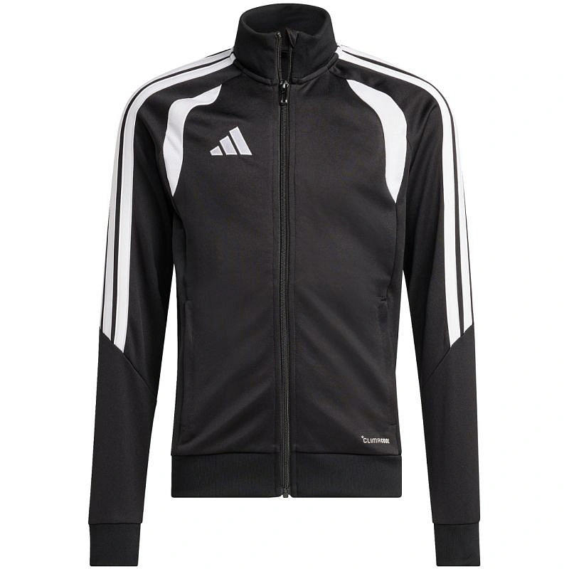 Dětská fotbalová mikina adidas Tiro 26 League Training černá JY7202 Tato dětská fotbalová mikina adidas je ideální na trénink. stojáček. zip po celé délce. přiléhavý střih. technologie climacool odvádí a rozptyluje pot. pruhy na rukávech. decentní logo. rychleschnoucí vlákna. materiál: 100% recyklovaný polyester.