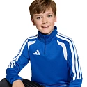 Dětská fotbalová mikina adidas Tiro 26 League Training Top modro-bílá JY7162 Tato dětská fotbalová mikina adidas je ideální na trénink. Zakončená nášivkou na ochranu brady, krátký zip. Přizpůsobený střih. Technologie Climacool je funkční řešení, které vás udrží v chladu a suchu a umožní vám soustředit se na hru. Elastické lemování na lemu a manžetách. Kontrastní síťované vsadky. Pruhy na rukávech. Jemné logo na hrudi. Materiál: 100% recyklovaný polyester.
