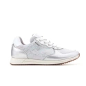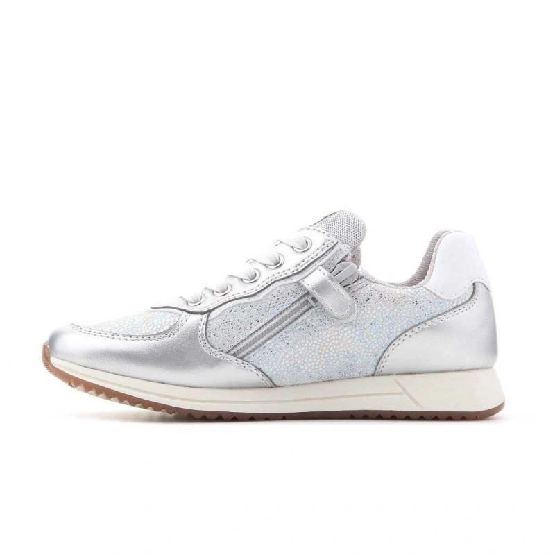 - Stříbrný šněrovací svršek má vsadky se stříbrnými třpytkami.