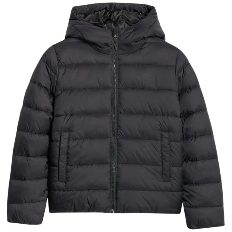Kurtka puchowa dla dzieci 4F U0704 głęboka czerń 4FJWAW25TDJAU0704 20S Kurtka dla dzieci 4F sprawdzi się w okresie przejściowym. Dane techniczne:· Materiał główny: 100% poliamid· Podszewka: 100% poliester· Wypełnienie: 100% poliester (puch syntetyczny)· Regularny krój - wygodnie dopasowuje się do sylwetki, zapewniając swobodę ruchów· Standardowy fason - długość sięgająca do bioder dla codziennej wygody· Klasyczne poziome pikowanie – nadaje kurtce ponadczasowy wygląd· Przeznaczenie - idealna na cieplejsze dni w okresie przejściowym· Hydrofobowa powłoka – ogranicza wchłanianie wilgoci, zwiększając ochronę przed lekkim deszczem· Technologia 4FWarm - wspiera komfort cieplny w zmiennych warunkach pogodowych· Zintegrowany kaptur bez regulacji – zapewnia podstawową ochronę przed wiatrem· Wysoki kołnierz - dodatkowe zabezpieczenie szyi przed chłodem· 2 kieszenie boczne - wygodne miejsce na drobne przedmioty lub ogrzanie rąk· Jednokierunkowy zamek główny z wewnętrzn