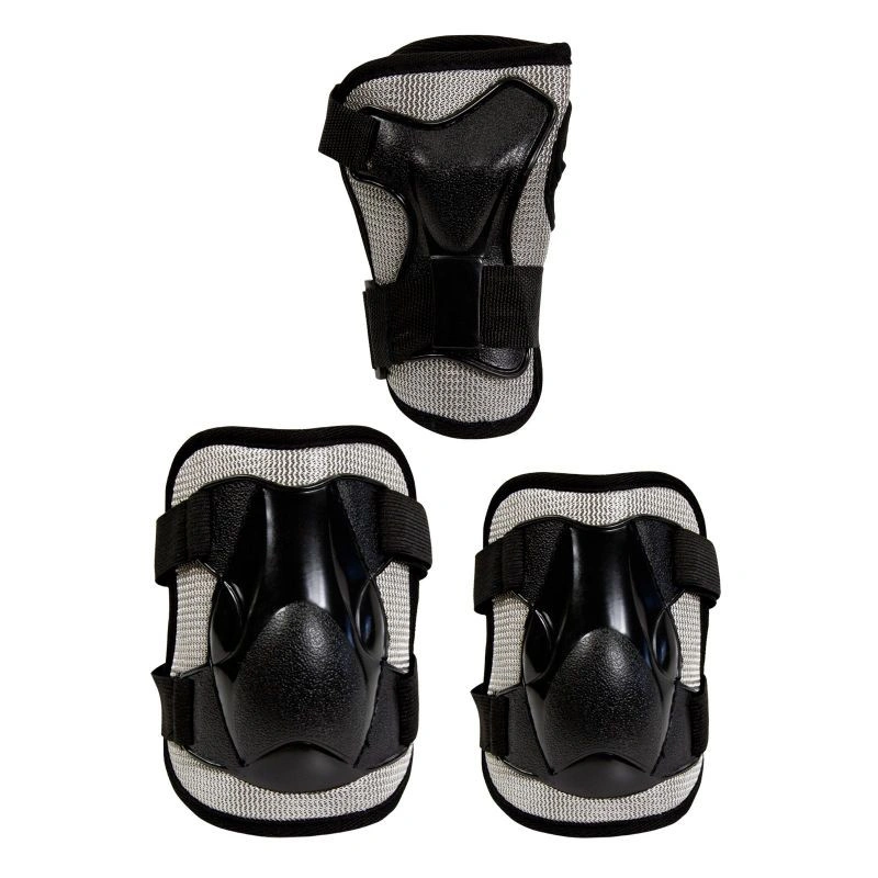 Sada chráničů JUNIOR poskytuje ochranu těmto částem těla a zároveň neomezuje v pohybu. Chrániče kolen a loktů jsou připevněny pružnými pásky na suchý zip a chrániče zápěstí jsou připevněny dvěma nepružnými pásky na suchý zip. Chrániče se při jízdě nepohybují a dokonale přiléhají k tělu. Vše je zabaleno v praktické síťované tašce.