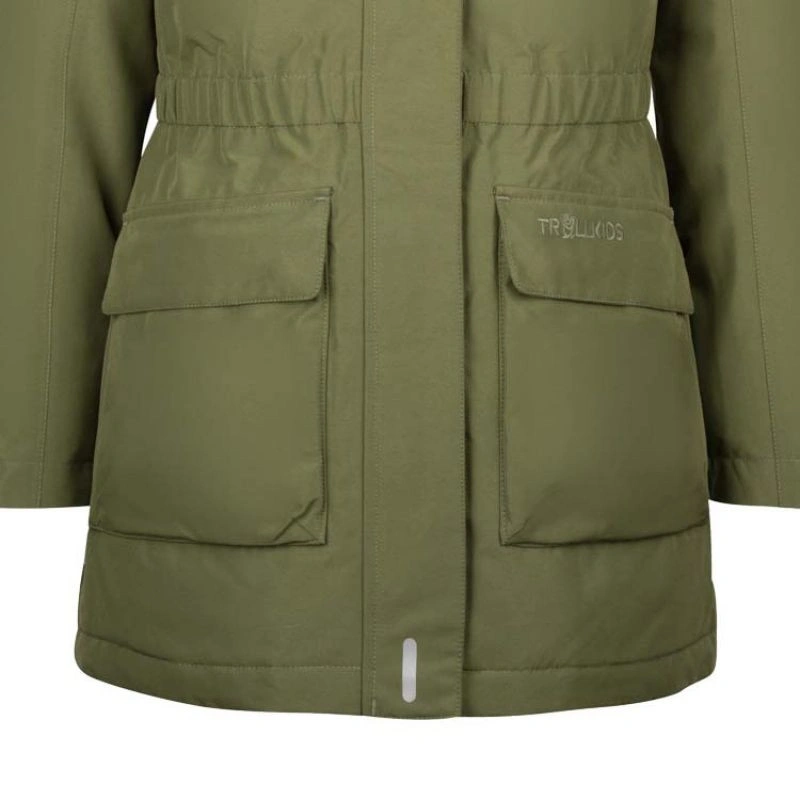 Popis Dětská zimní bunda s kapucí Trollkids Dívčí nepromokavý kabát Alesund zelená (301-323)