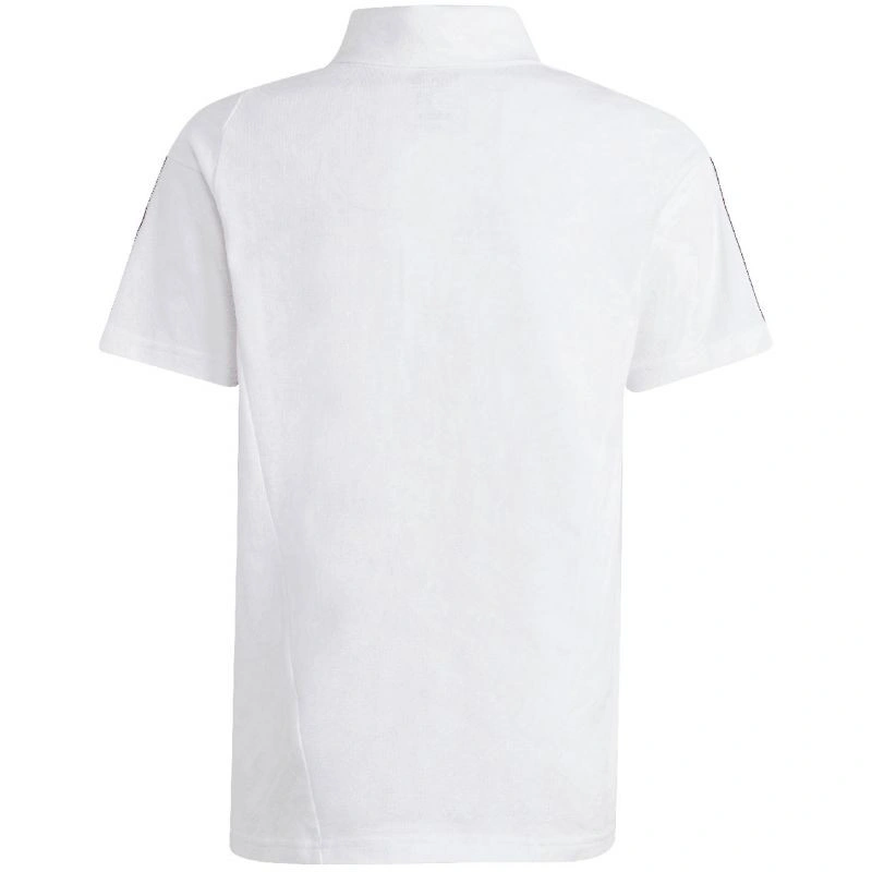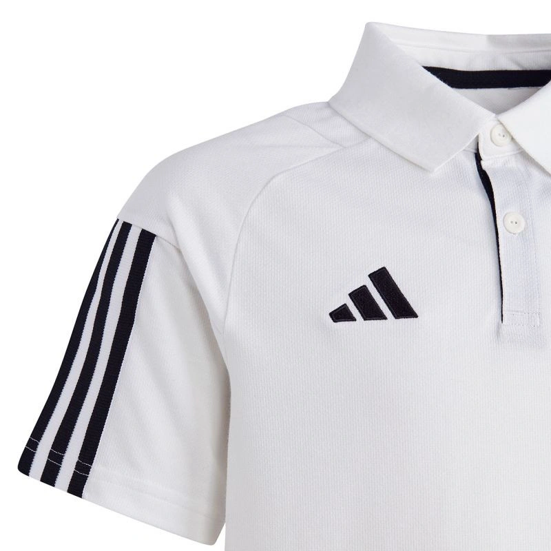 Soutěžní tričko adidas Tiro 23 IC4576 Toto tričko adidas je ideální, když vaše dítě odpočívá u postranní čáry nebo s týmem na dalším zápase. Pruhy na ramenou. Vyšívané logo na hrudi. Design Tiro line. Límec a zapínání na knoflíky. Rychleschnoucí bavlněná vlákna. Převážně recyklovaný materiál. Standardní střih. 65 % polyester, 35 % bavlna.