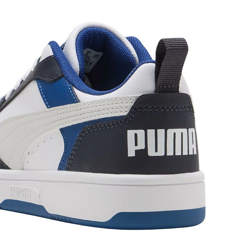 Popis Dětské boty Puma Rebound V6 Lo Mid white and blue 393833 28