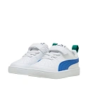 Dětská obuv Puma Rickie AC+ Inf bílá 384314 41 Dětská obuv Puma pro každodenní nošení. Konstrukce z ekokůže. Perforace v přední části. Měkká textilní podšívka a pěnová stélka. Elastické gumičky připomínající šněrování. Přídavný pásek na suchý zip. Gumová podrážka.